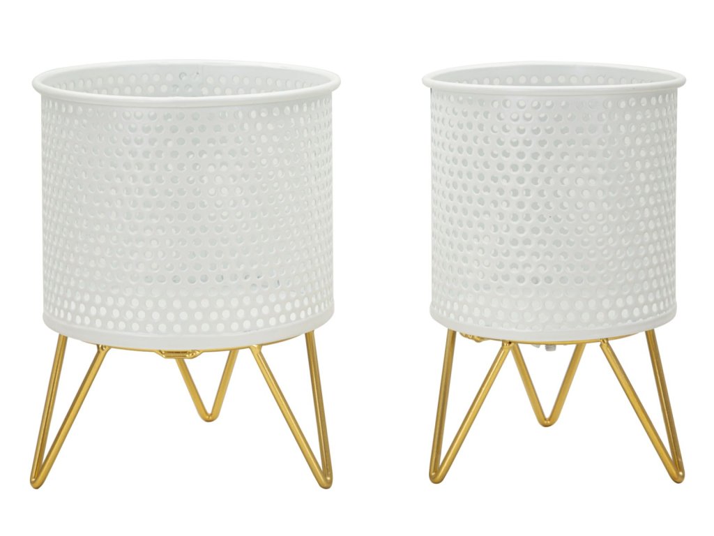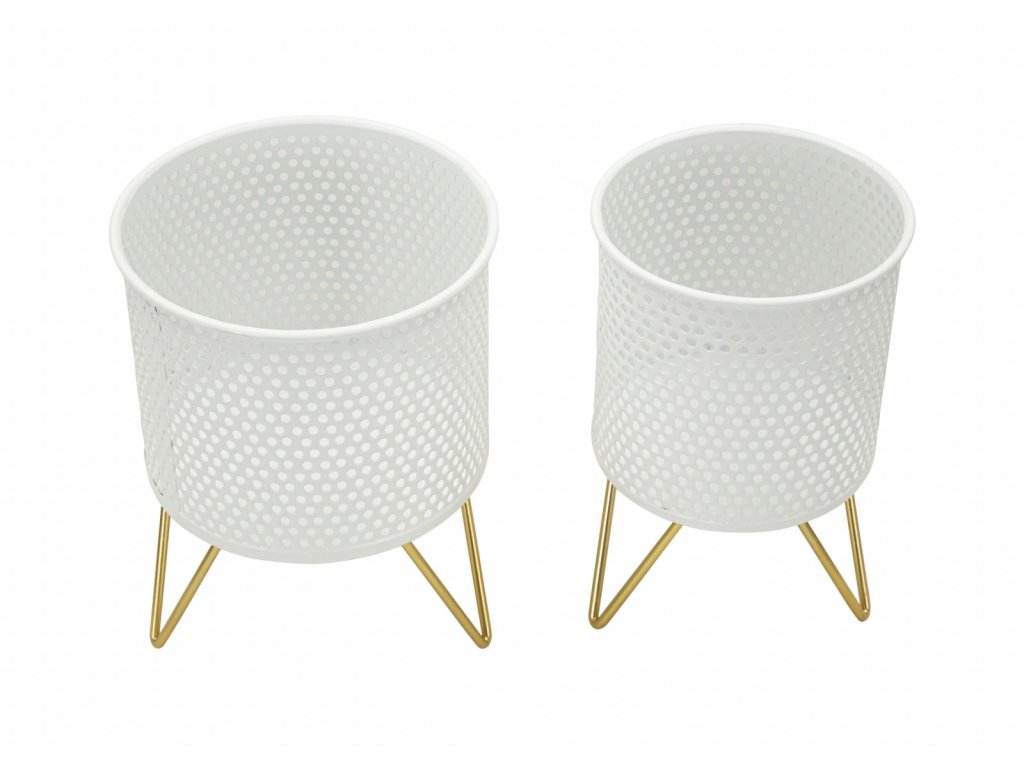 Stojany na rastliny Gaspy – moderný set dvoch bielych kovových stojanov so zlatým rámom.