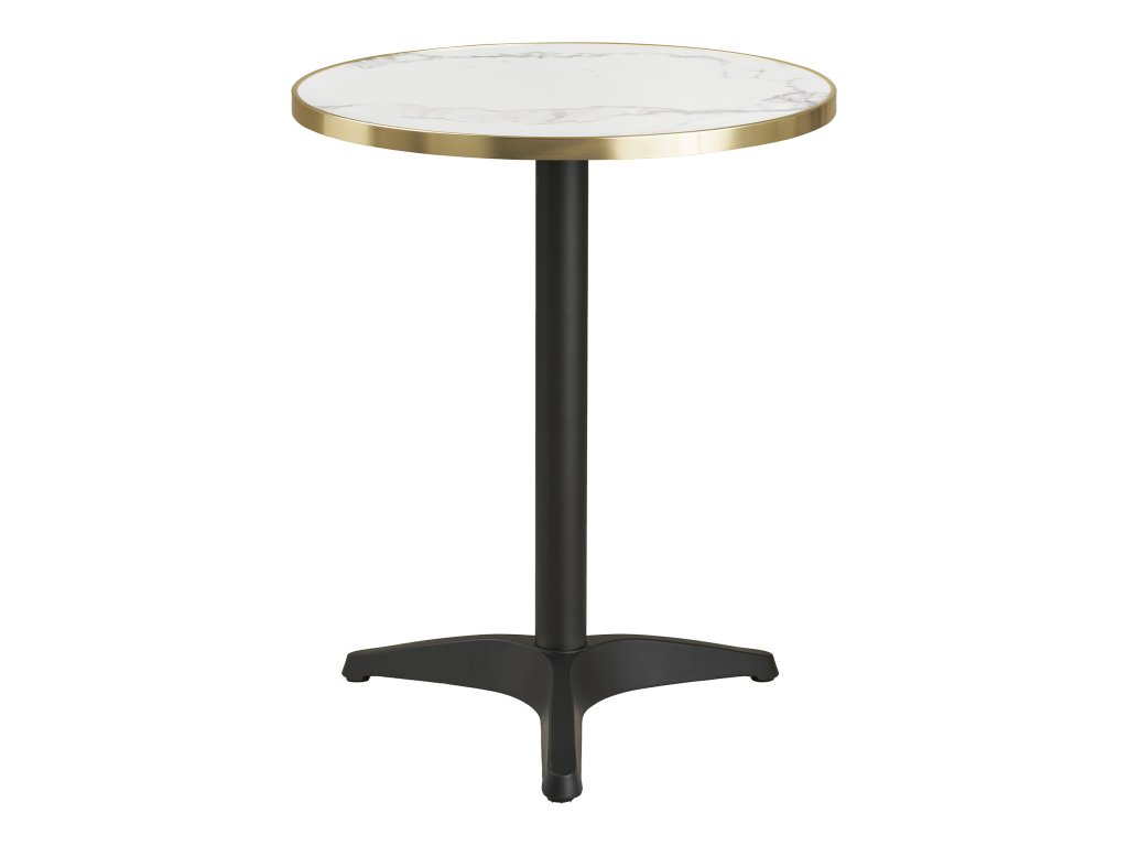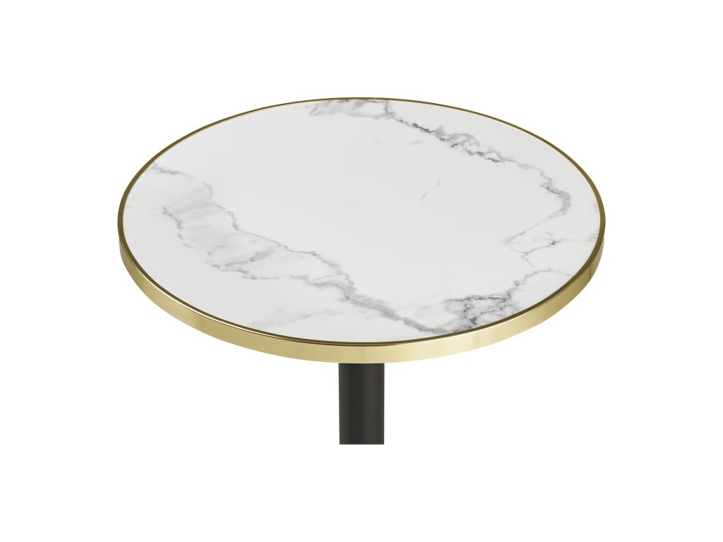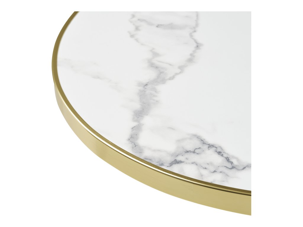 Biely bistro stôl 60 cm – štýlový stôl s mramorovým vzhľadom, zlatým okrajom a hliníkovými nohami.