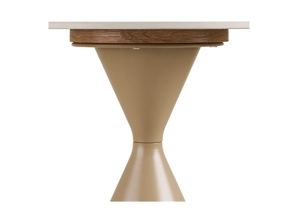 Keramická vrchná doska je odolná voči poškriabaniu, teplu aj bežnému používaniu, zatiaľ čo pevná oceľová konštrukcia zabezpečuje stabilitu a dlhú životnosť. Vďaka kompaktným rozmerom je stolík ideálny k sedačke, kreslu alebo ako samostatný odkladací prvok v interiéri.