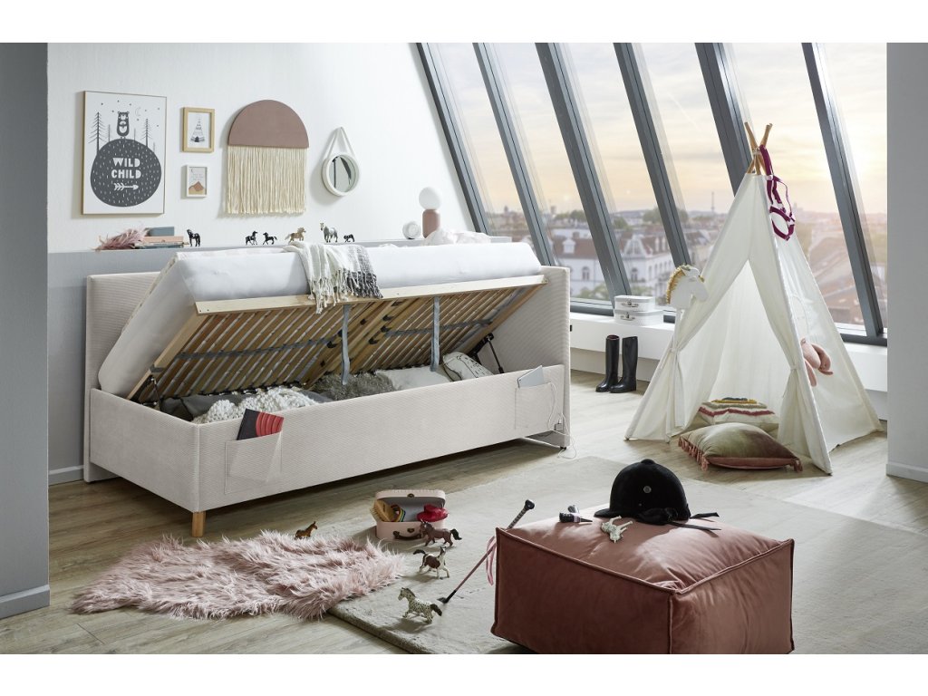 COOL Sofabed je viac než len posteľ. Voliteľne si môžete doplniť úložný box a rošt, aby ste maximalizovali priestor vo vašej izbe. K dispozícii je aj 7-zónová pružinová matracová vložka, ktorá sa dá obojstranne používať a poskytuje optimálnu oporu chrbtici.