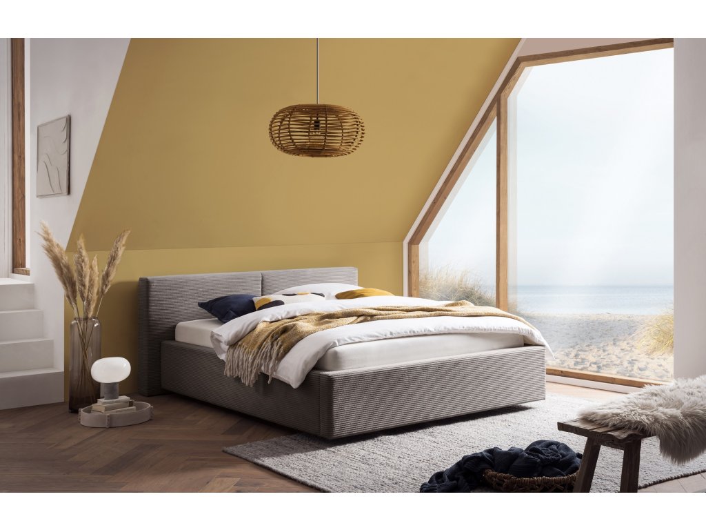 Posteľ je potiahnutá odolnou látkou POSO zo 100 % polyesteru, ktorá je príjemná na dotyk a zároveň nenáročná na údržbu. Hladké čelo s jemným prešívaním pôsobí moderne, no zároveň vytvára útulnú atmosféru.