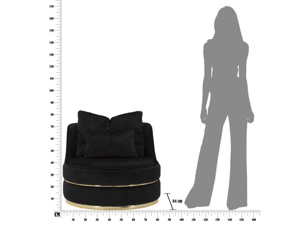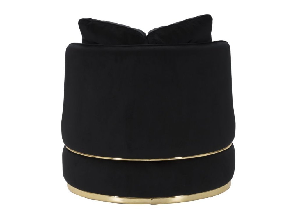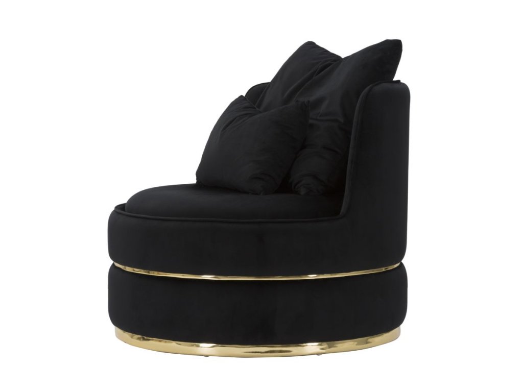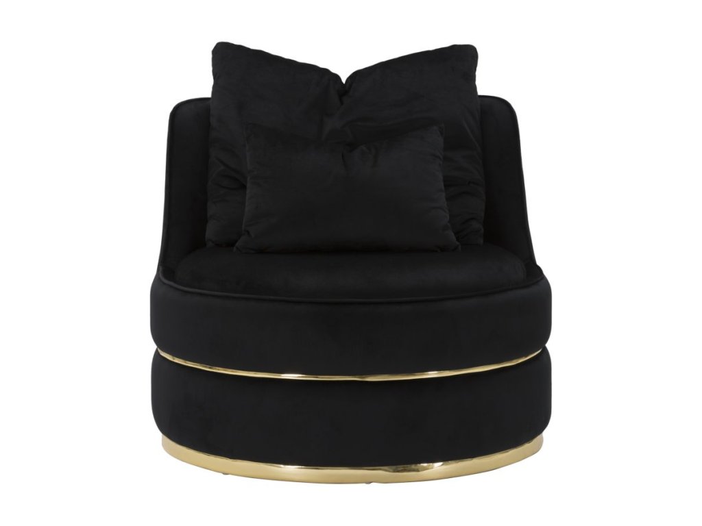 Kreslo Paris Space v čiernej farbe s zlatými detailmi predstavuje spojenie luxusu, pohodlia a jedinečného dizajnu. Elegantné čalúnenie dopĺňajú dve zlaté dekorácie po celom obvode, ktoré dodávajú kreslu sofistikovaný a štýlový vzhľad.