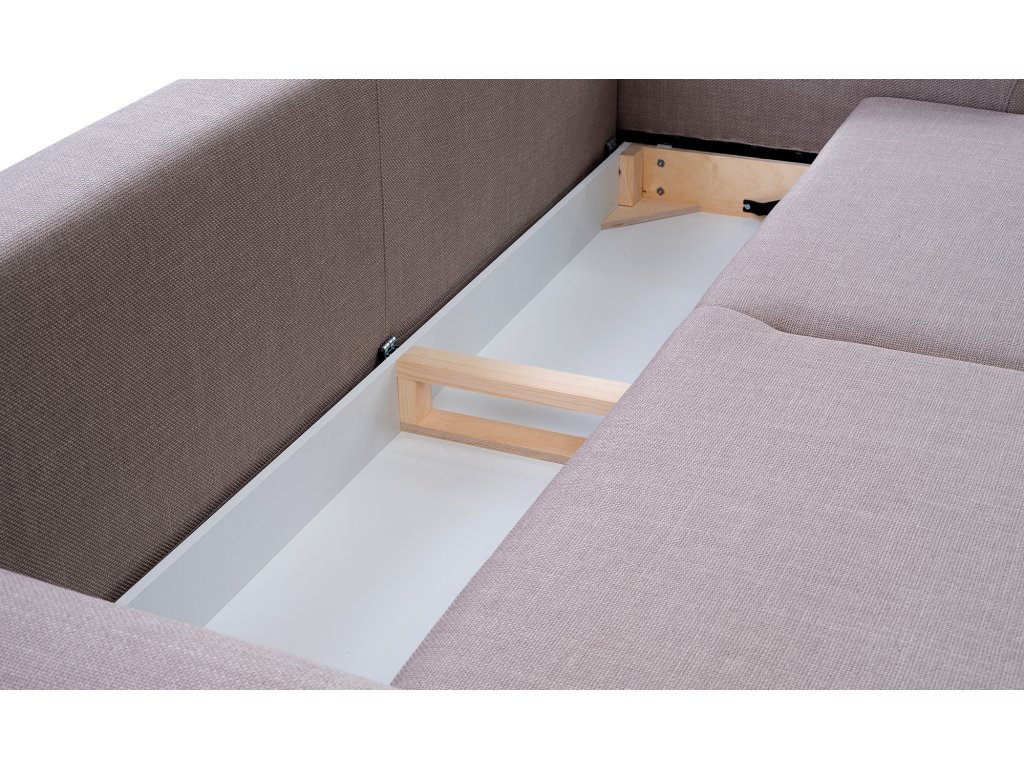 Nechýba ani úložný priestor na posteľnú bielizeň a čalúnené operadlo, vďaka ktorému môžete pohovku postaviť voľne do priestoru.