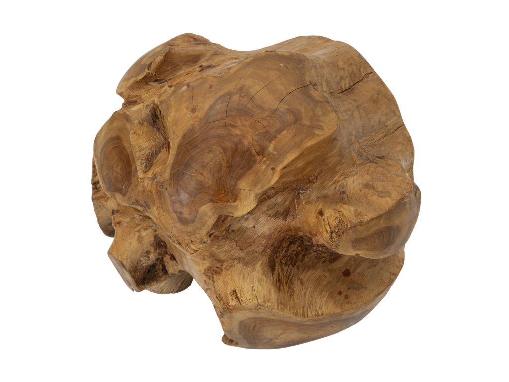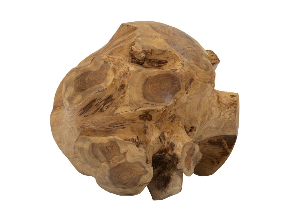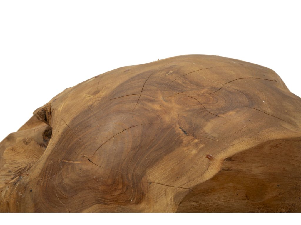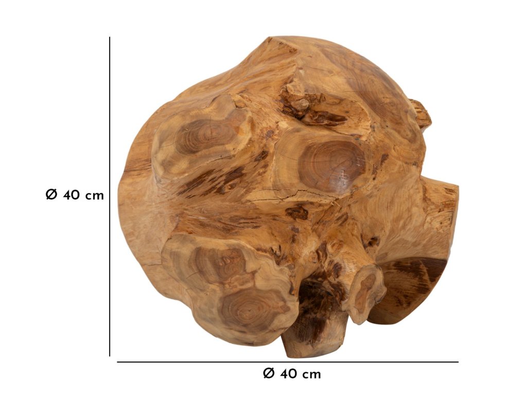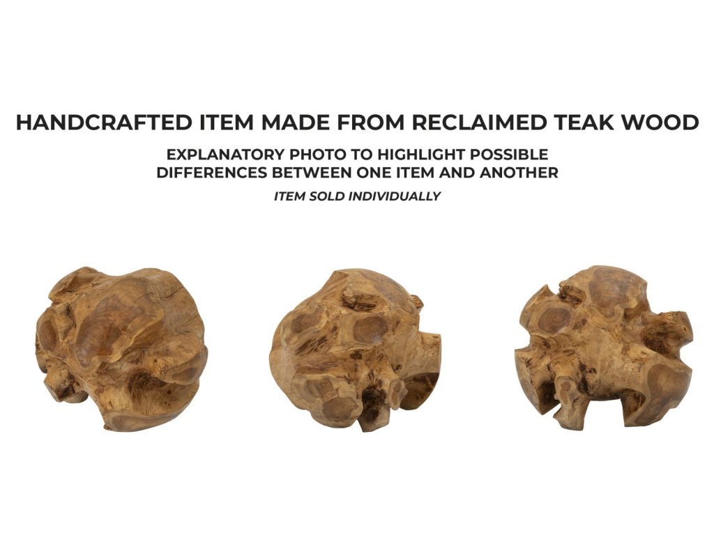 Dekoratívna guľa z prírodného teaku Ø 40 je výnimočný dekoratívny objekt, ručne tvarovaný z recyklovaného tíkového dreva. Každý kus vzniká s dôrazom na zachovanie prirodzenej kresby, štruktúry a organických nedokonalostí materiálu, vďaka čomu pôsobí autenticky a nadčasovo.