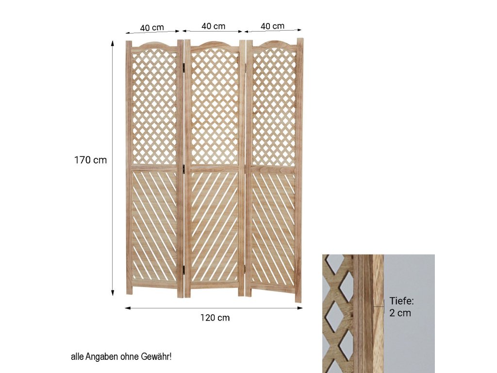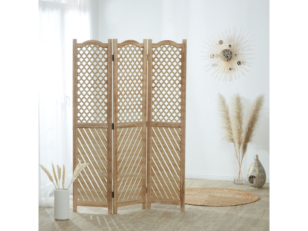 Tento 3-panelový drevený paraván je ideálny do obývačky, spálne, kancelárie či predsiene. Môže poslúžiť ako clona na súkromie, optické rozdelenie priestoru alebo jednoducho ako štýlový doplnok, ktorý zvýrazní prirodzené tóny vášho interiéru.