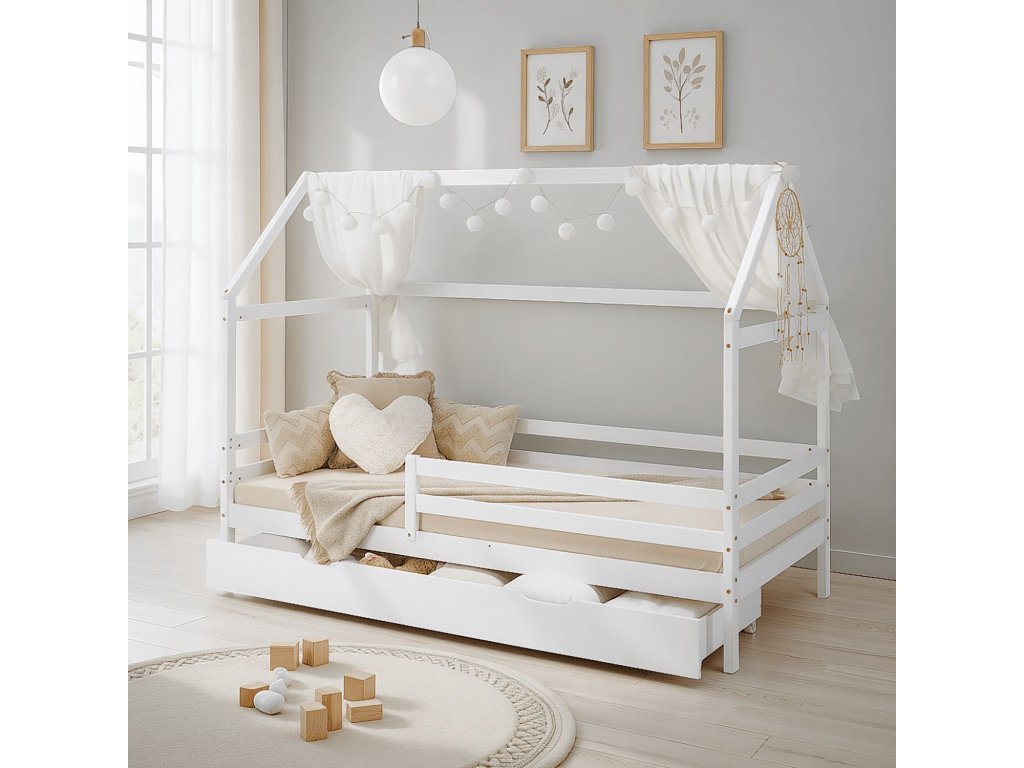 Otvorená strešná konštrukcia umožňuje dekorovanie podľa fantázie – svetielka, baldachýn, vlajočky či obľúbené plyšáky premenia posteľ na útulné hniezdo, ktoré si vaše dieťa okamžite zamiluje.