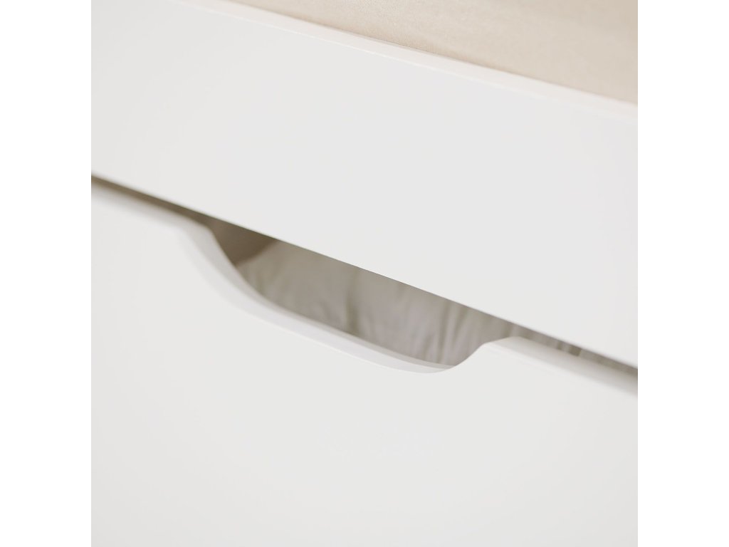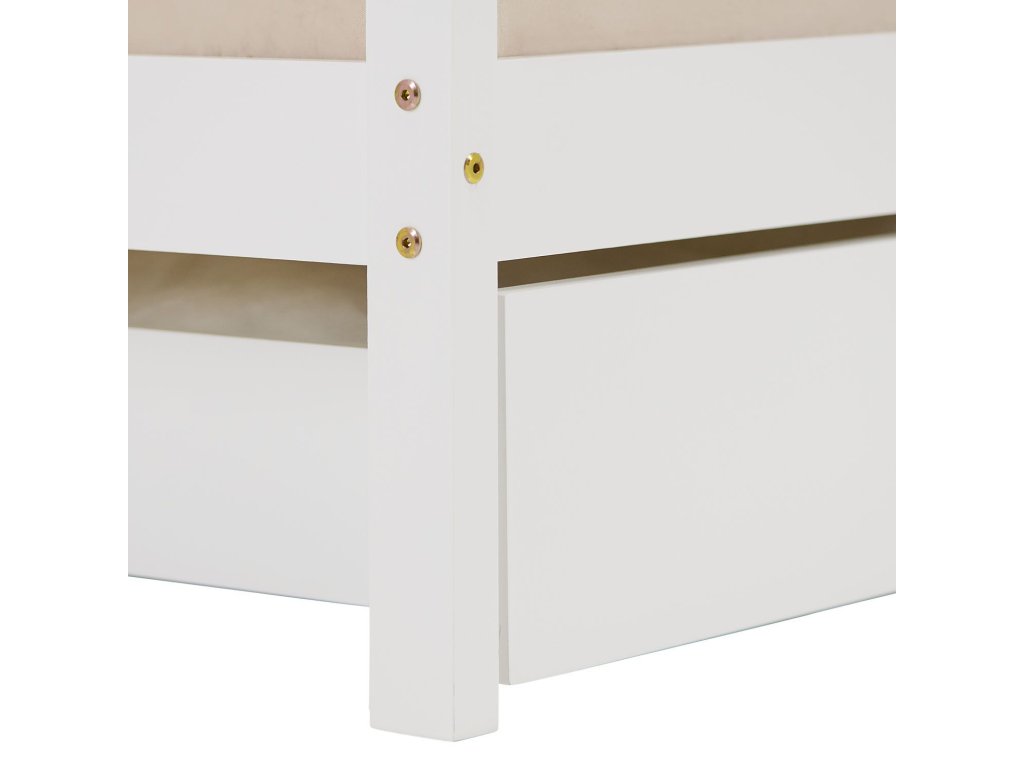 Veľkým plusom je priestranná zásuvka pod posteľou. Uložíte do nej periny, hračky či sezónne veci – izba tak zostane uprataná a prehľadná. Zásuvka je na kolieskach, takže ju bez námahy vysunú aj deti.