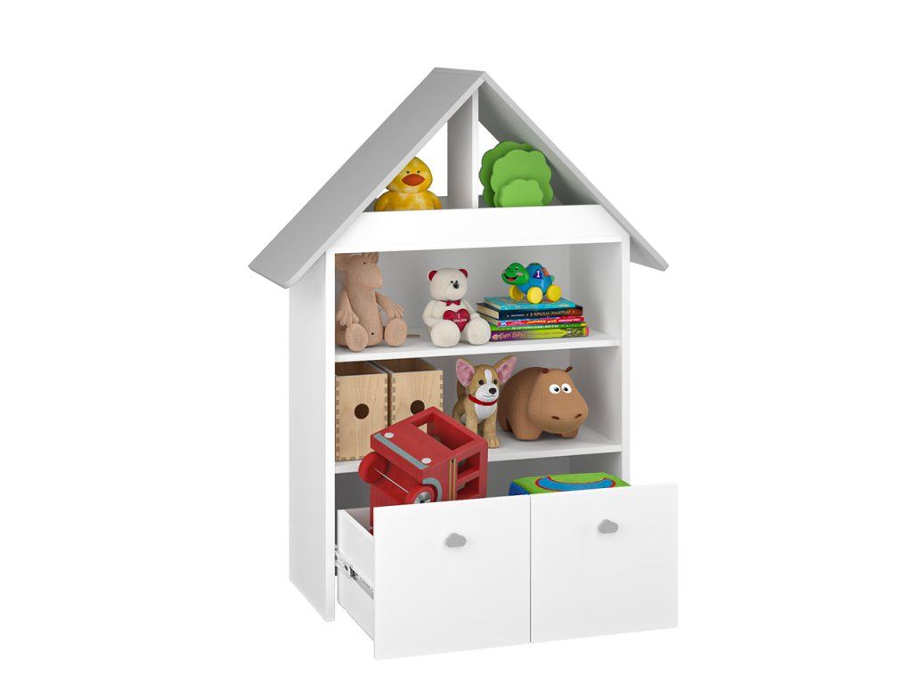 Regál Leon je praktický a štýlový regál do detskej izby, ktorý ponúka dostatok priestoru na uloženie kníh, hračiek aj dekorácií. Kombinácia bielej a sivej farby pôsobí moderne a univerzálne, takže sa hodí do izby pre chlapca aj dievča.