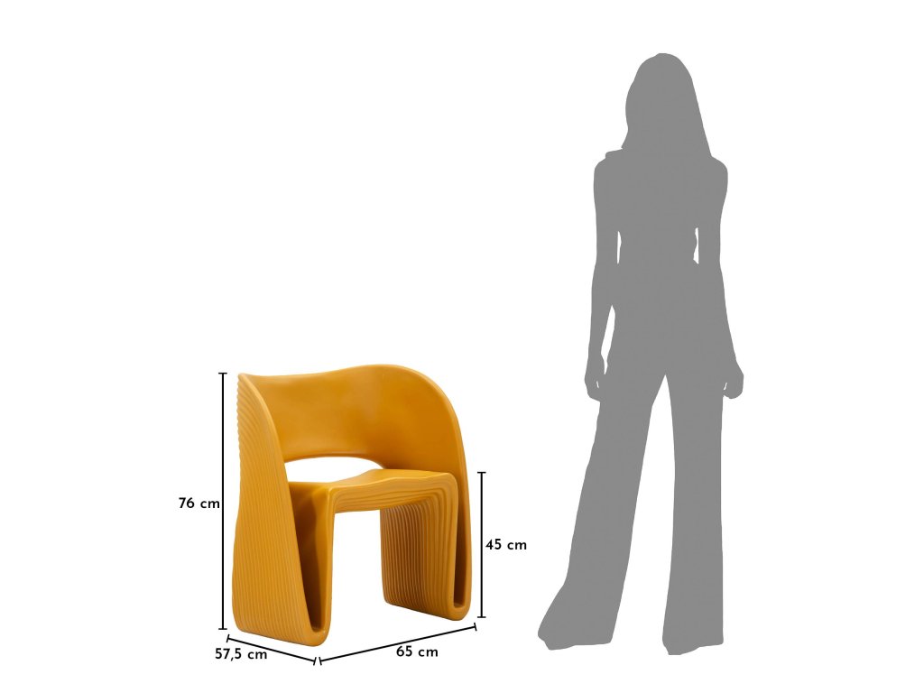 Horčicová (mustard) farba zvýrazňuje tvar kresla a vnáša do priestoru teplo a energiu, vďaka čomu skvelo oživí aj minimalistické alebo neutrálne prostredie. Kreslo je vyrobené z kvalitného, tvrdého a vysoko odolného plastu, ktorý zaručuje pevnosť, stabilitu a dlhú životnosť aj pri každodennom používaní.