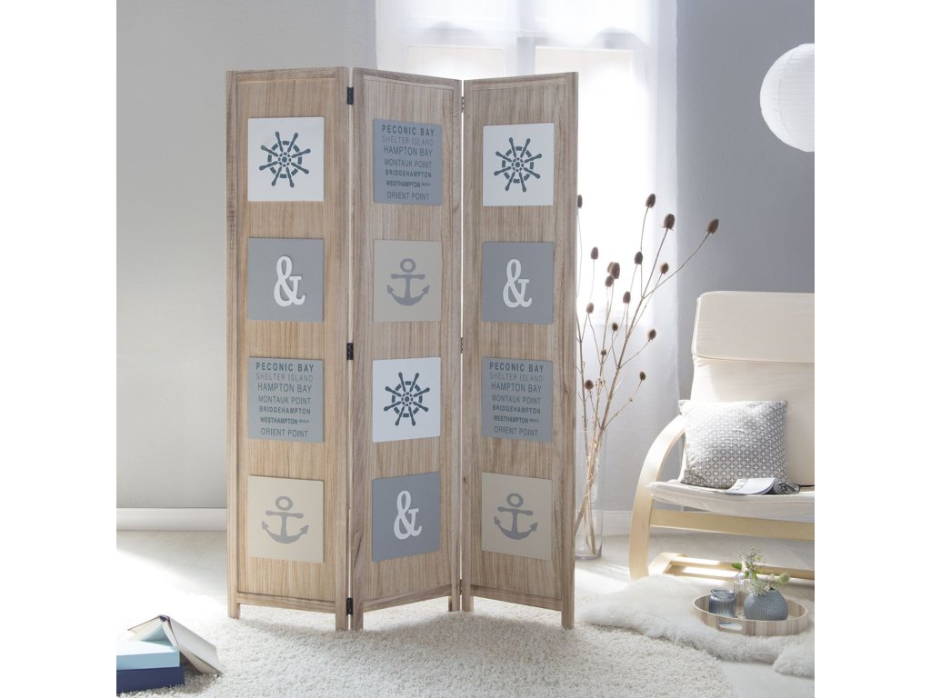 Drevený 3 dielny paraván Maritime v námorníckom štýle