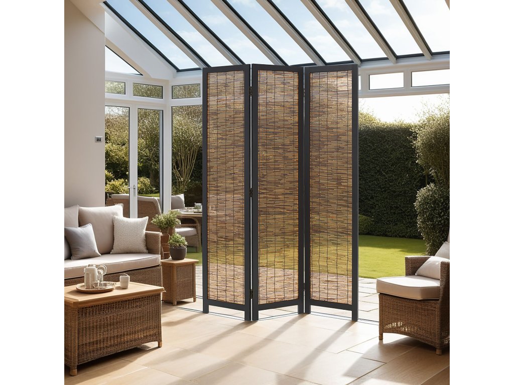 Jemné prútie zachytáva svetlo jedinečným spôsobom, vrhá mäkké tiene a dodáva miestnosti hĺbku a útulnosť. Vďaka trom skladacím panelom je paraván nielen dekoratívny, ale aj mimoriadne praktický – poslúži ako súkromná zástena v spálni, deliaca stena v obývačke či lofte, alebo ako štýlový prvok v pracovni, štúdiu či zimnej záhrade.