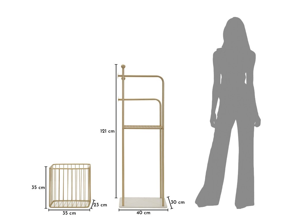 Konštrukcia držiaka je vyrobená z kombinácie kovu a základne z umelého mramoru, ktorá zabezpečuje stabilitu a zároveň dodáva produktu luxusný charakter. Zlatý kov krásne odráža svetlo a v kombinácii s mramorovým efektom vytvára elegantný kontrast, ktorý dodáva kúpeľni sofistikovaný vzhľad.