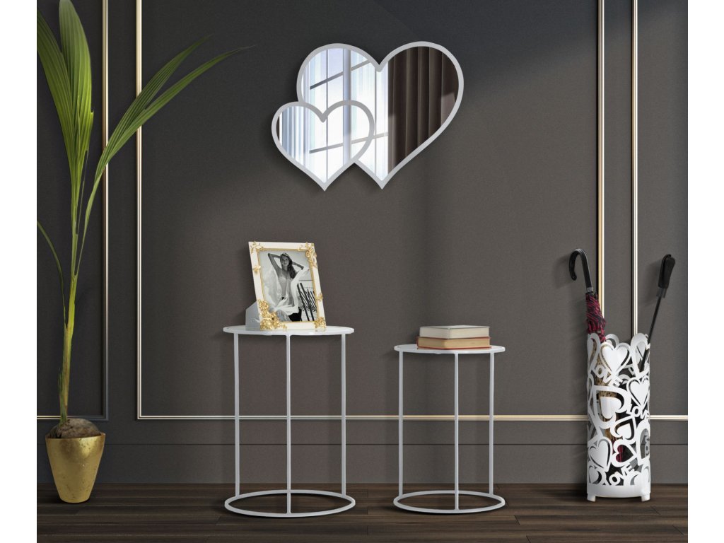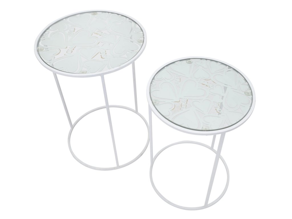 Elegantná sada dvoch stolíkov biele srdcia – jemný dizajn s bielou eleganciou.