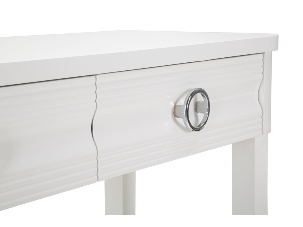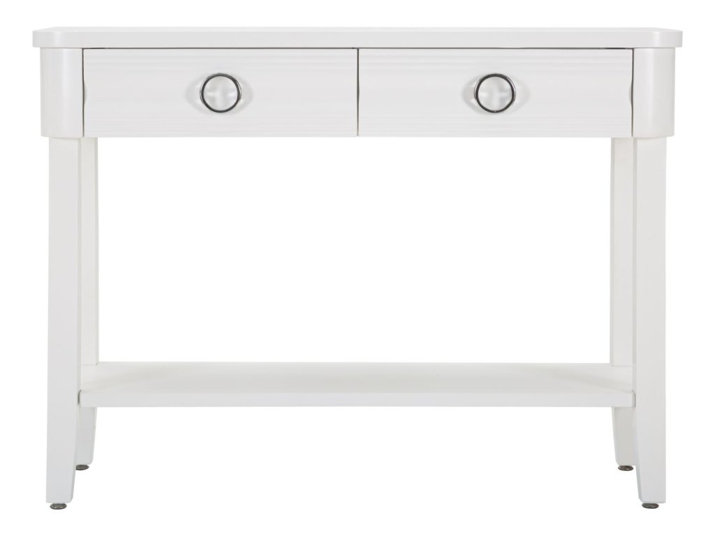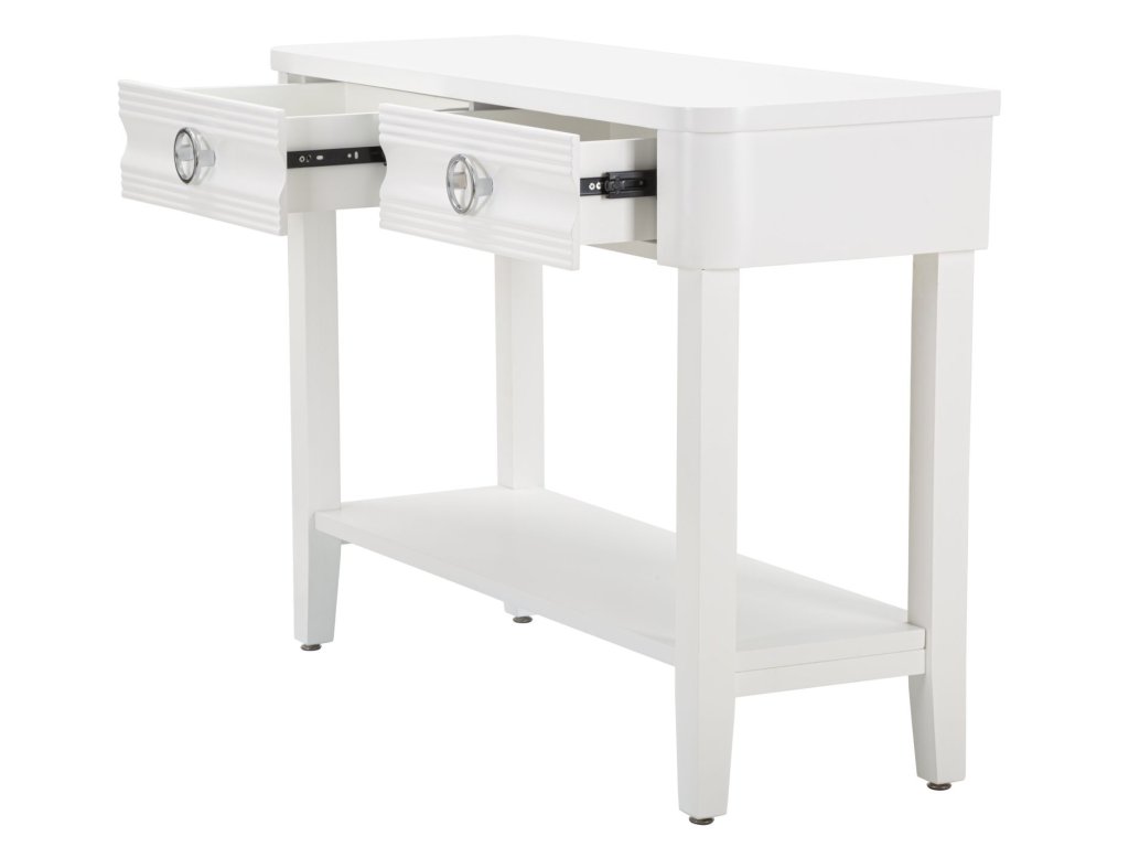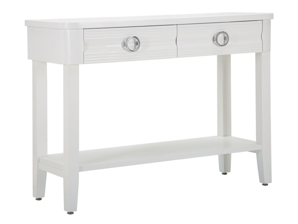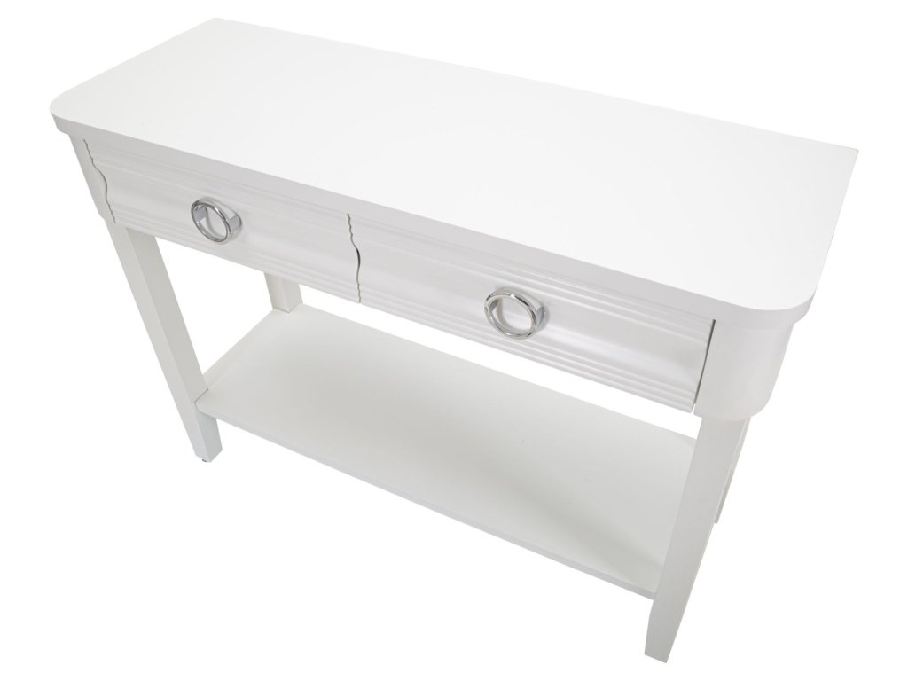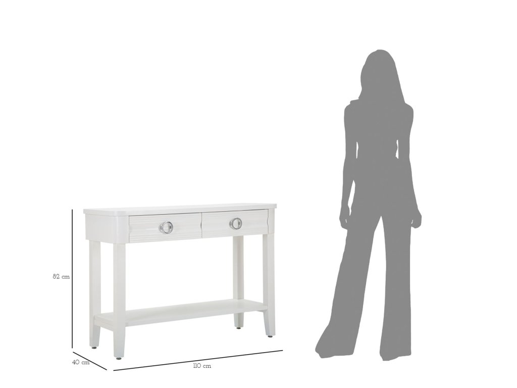 Vyrobený z prvotriedneho dreva s hladkým bielym povrchom, stolík SHINE pôsobí veľmi sofistikovane a ľahko sa kombinuje s rôznymi štýlmi zariadenia. Jeho rozmery 110 cm na šírku, 40 cm na hĺbku a výška 82 cm zabezpečujú dostatok miesta na odkladanie vecí a dekorácií.