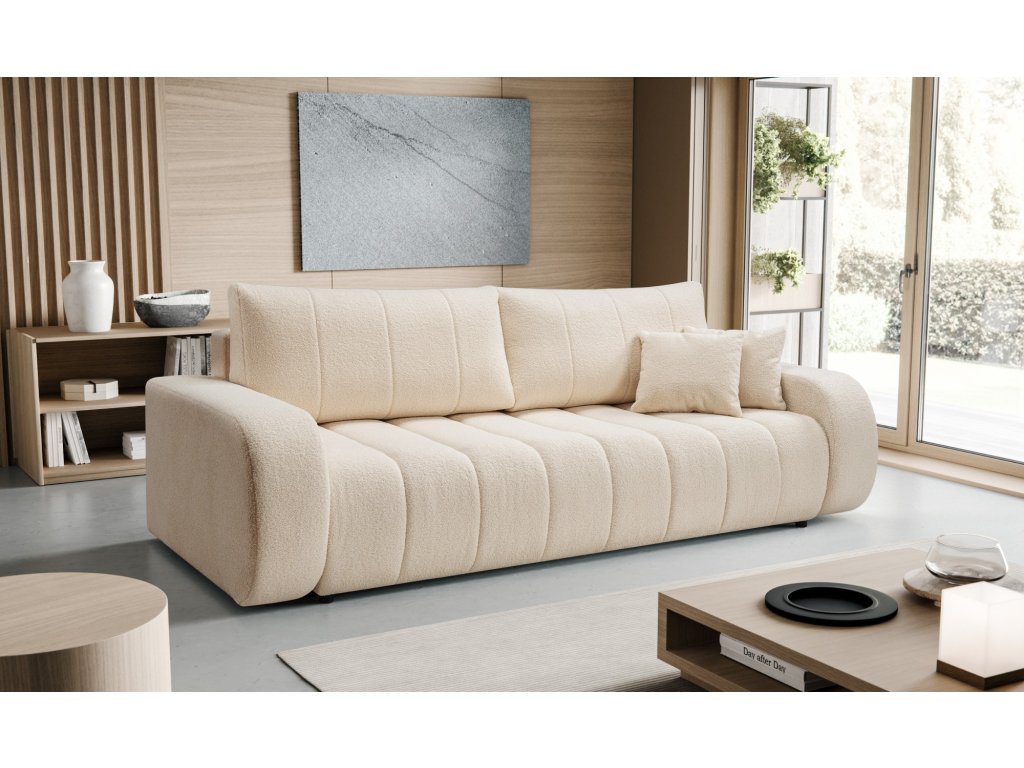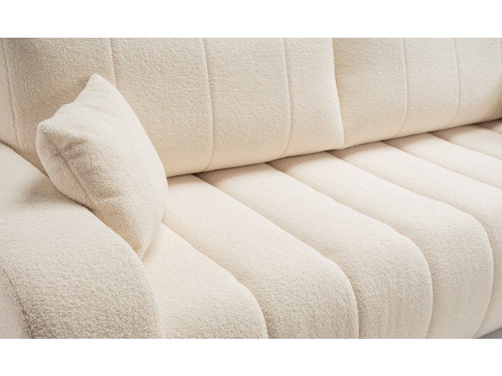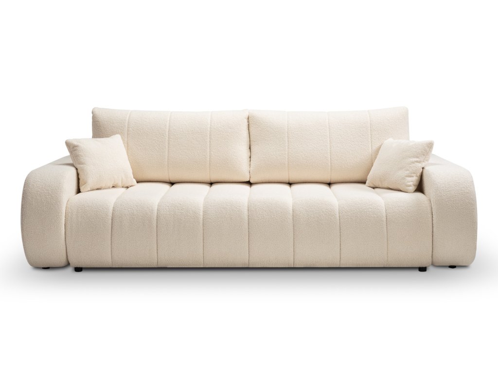 Charakteristickými prvkami sú veľké , mäkké opierkové vankúše , ktoré poskytujú maximálny komfort a dekoratívne vertikálne prešívanie , ktoré pohovke dodáva jemnú štruktúru a vizuálnu hĺbku. Zaoblené bočnice a sedacia časť zjemňujú celkový výraz pohovky a prispievajú k príjemne pôsobiacej siluete. Celok dotvárajú štíhle minimalistické nožičky a ozdobné vankúše, ktoré dodávajú pohovke finálny štýlový akcent. Vďaka rozkladacej funkcii a úložnému priestoru je ideálna aj do domácnosti, kde sa komfort snúbi s praktickosťou. Čalúnené operadlo vám navyše umožní umiestniť pohovku voľne do priestoru, nie iba k stene. Vytvorte si z obývačky miesto, kam sa budete vždy radi vracať. BALOO je pohovka, ktorá očarí dizajnom a nesklame pohodlím.