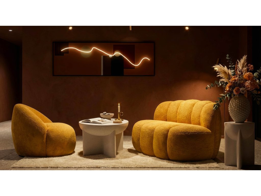 Pohovka Ball od talianskeho výrobcu Mauro Ferretti je dôkazom, že aj kompaktný kus nábytku dokáže vytvoriť silný vizuálny dojem. Jej mäkké, zaoblené línie v kombinácii s výrazným horčicovým odtieňom prinášajú do interiéru teplo, energiu a modernú eleganciu.