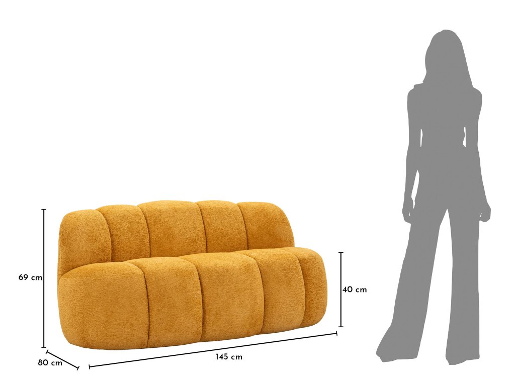 Konštrukcia pohovky je postavená na pevnom ráme, ktorý zaručuje stabilitu a dlhú životnosť. Výplň zo polyuretánovej peny poskytuje príjemný komfort pri sedení a polyesterový poťah je odolný, praktický a zároveň príjemný na dotyk. Horčicová farba pôsobí moderne, optimisticky a výborne sa kombinuje s neutrálnymi aj kontrastnými doplnkami.