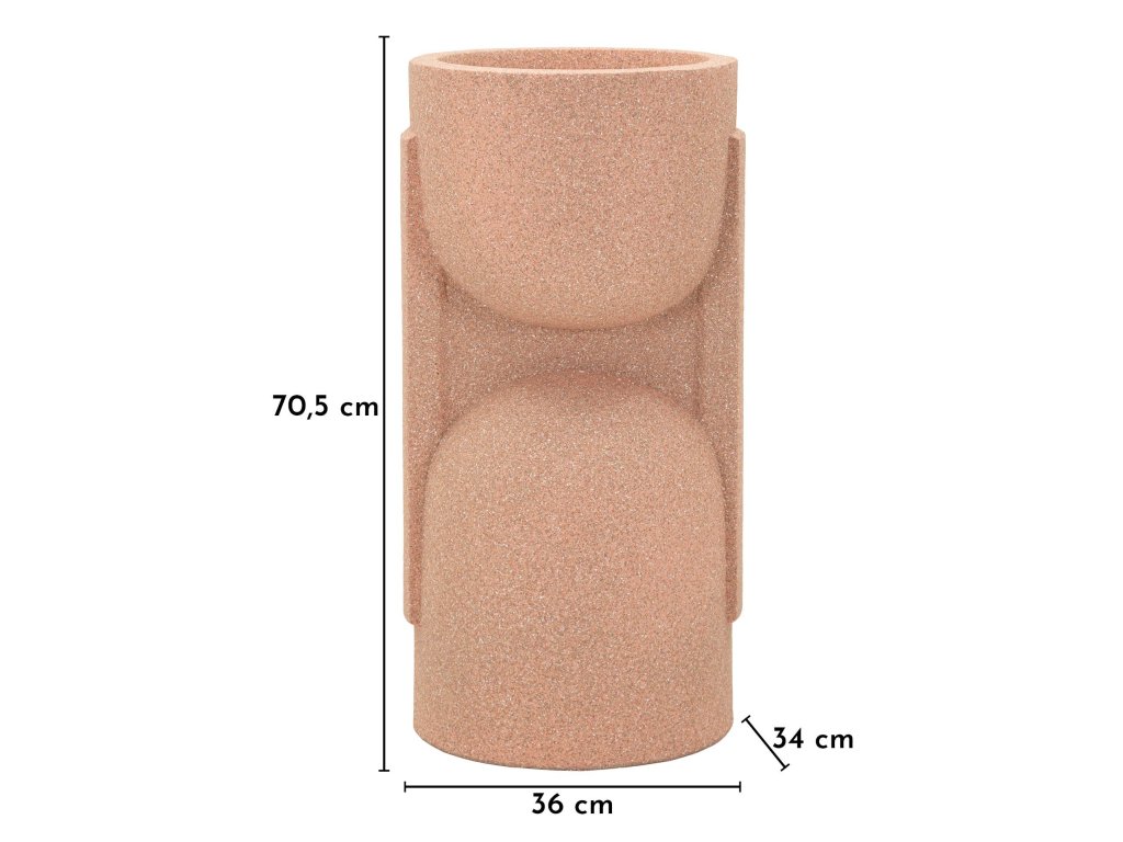Váza je vyrobená z polyresinu, odolného materiálu vhodného do interiéru aj exteriéru. Skvele sa hodí na terasu, balkón, k bazénu, do záhrady, ale aj do moderného interiéru či vstupnej haly. Ružové farebné prevedenie pôsobí originálne a sviežo, pričom váza môže slúžiť nielen na rastliny, ale aj ako samostatný dizajnový objekt.