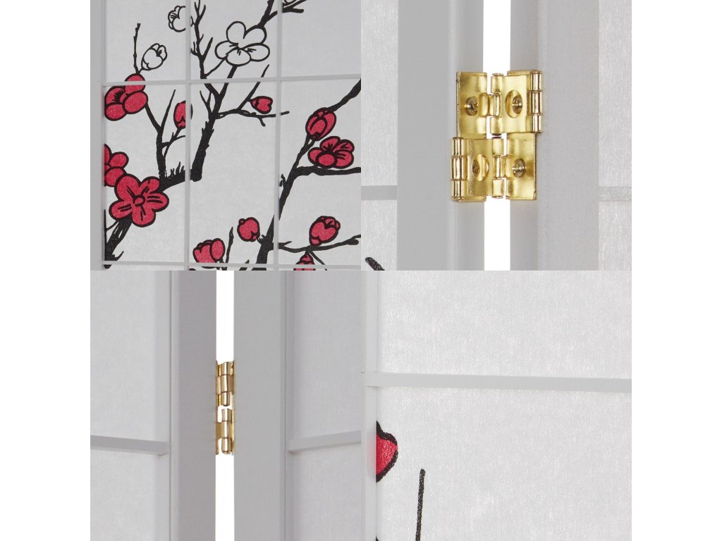Paraván s bielym rámom, výplň z ryžového papiera.