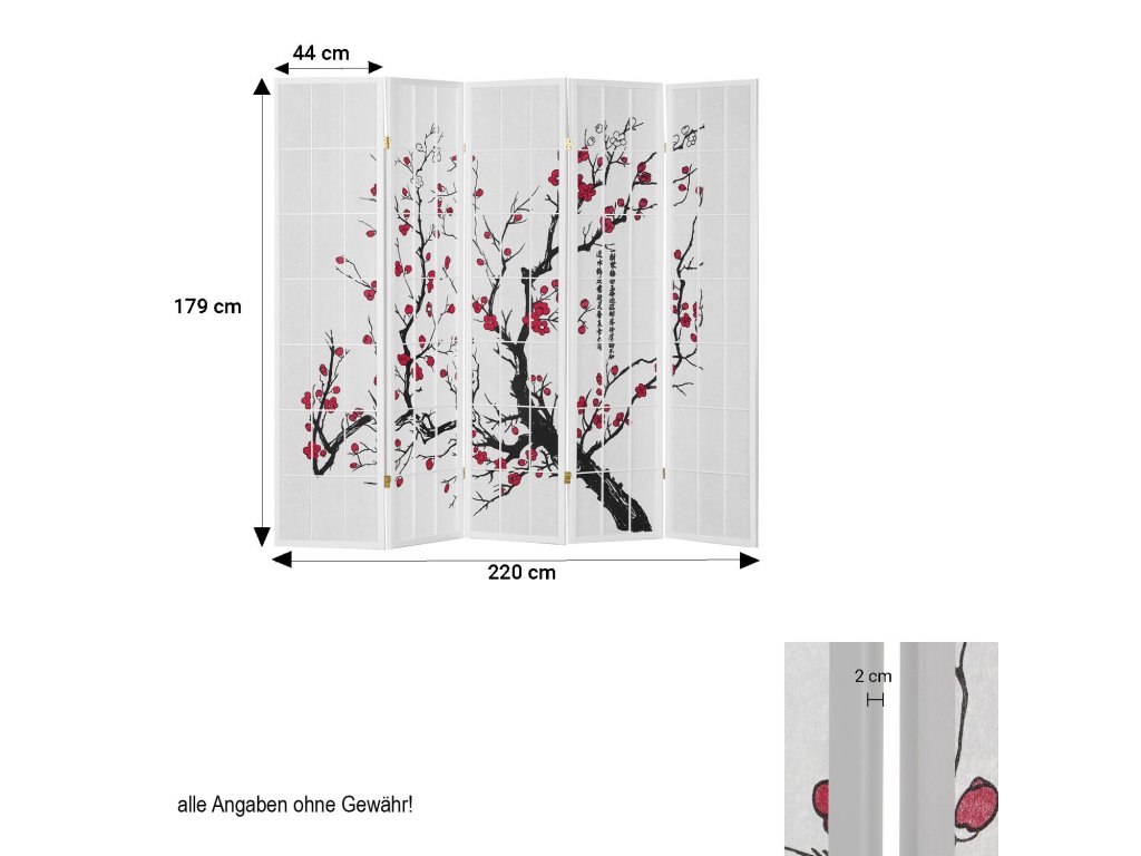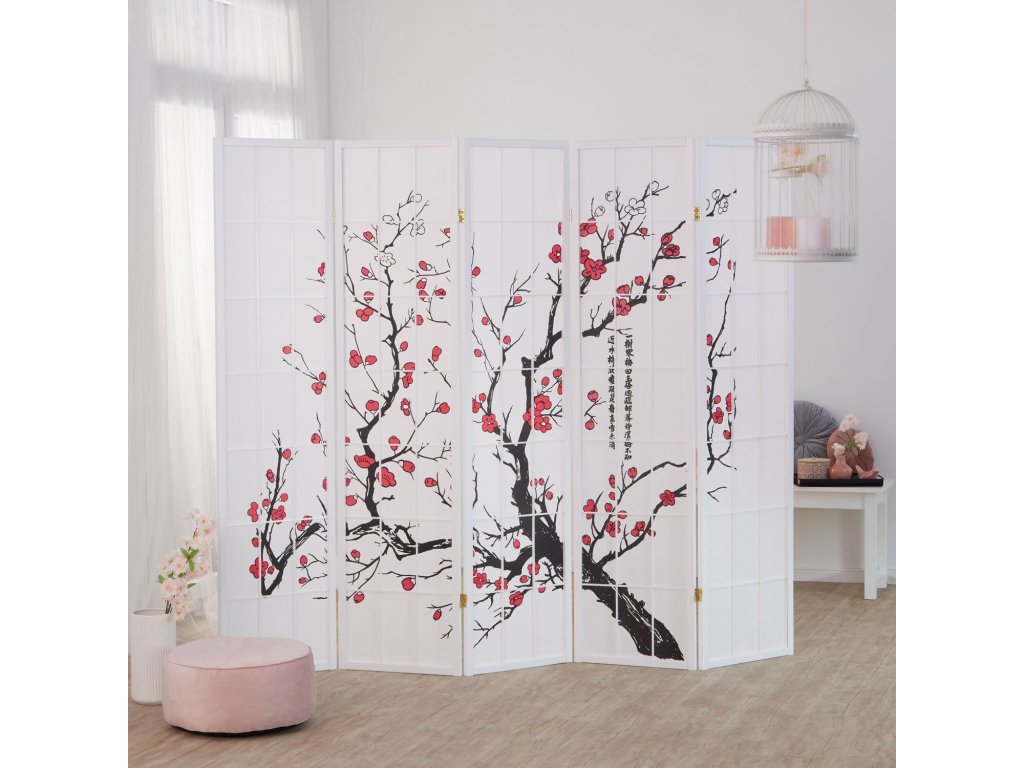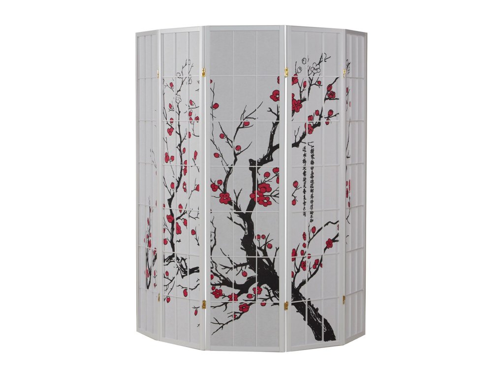 Päťdielny paraván s bielym rámom .