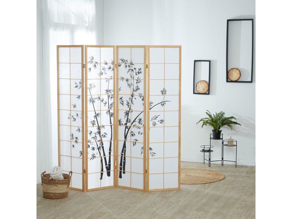 Japonský paraván vďaka svojmu idylickému vzhľadu vytvára v každej obývacej izbe príjemnú atmosféru. Paraván nemá len vizuálnu funkciu, ale má aj funkčný efekt ako deliaca stena na ochranu súkromia alebo oddelenie každého priestoru. Vďaka pántom, ktoré je možné zložiť v oboch smeroch, je možné paraván ľahko integrovať do obývacej izby presne podľa vašich individuálnych prianí. Ak to nie je potrebné, môže sa ľahko zložiť a šetriť tak priestor