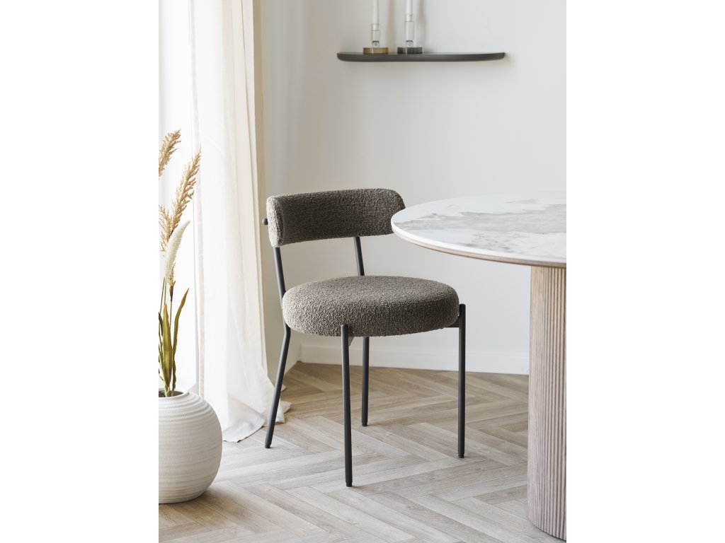 Stolička Badalona je dostupná v dvoch luxusných odtieňoch bouclé biela a bouclé hnedá, ktoré dodajú priestoru jemnosť, teplo a nadčasovú eleganciu. Jej ergonomický tvar, hustá polyuretánová pena s hustotou 28 kg/m³ a kvalitná polyesterová látka zaručujú komfortné sedenie pri jedálenskom stole, v kancelárii alebo ako štýlový doplnok obývacej izby.