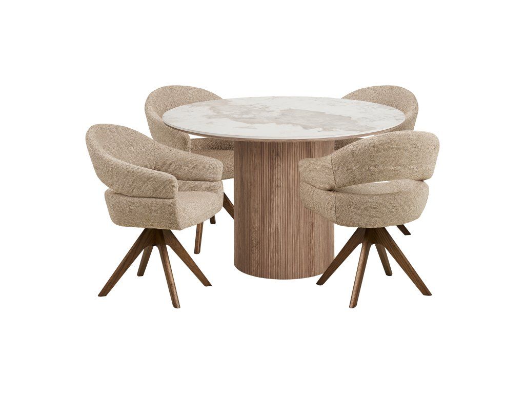 Jedálenská súprava Athens and Dover od značky House Nordic predstavuje dokonale zladené riešenie pre štýlové a funkčné stolovanie. Kombinácia moderného jedálenského stola a štyroch pohodlných otočných stoličiek vytvára harmonický celok, ktorý okamžite pozdvihne vzhľad každej jedálne.