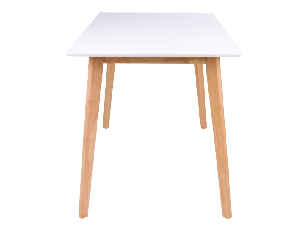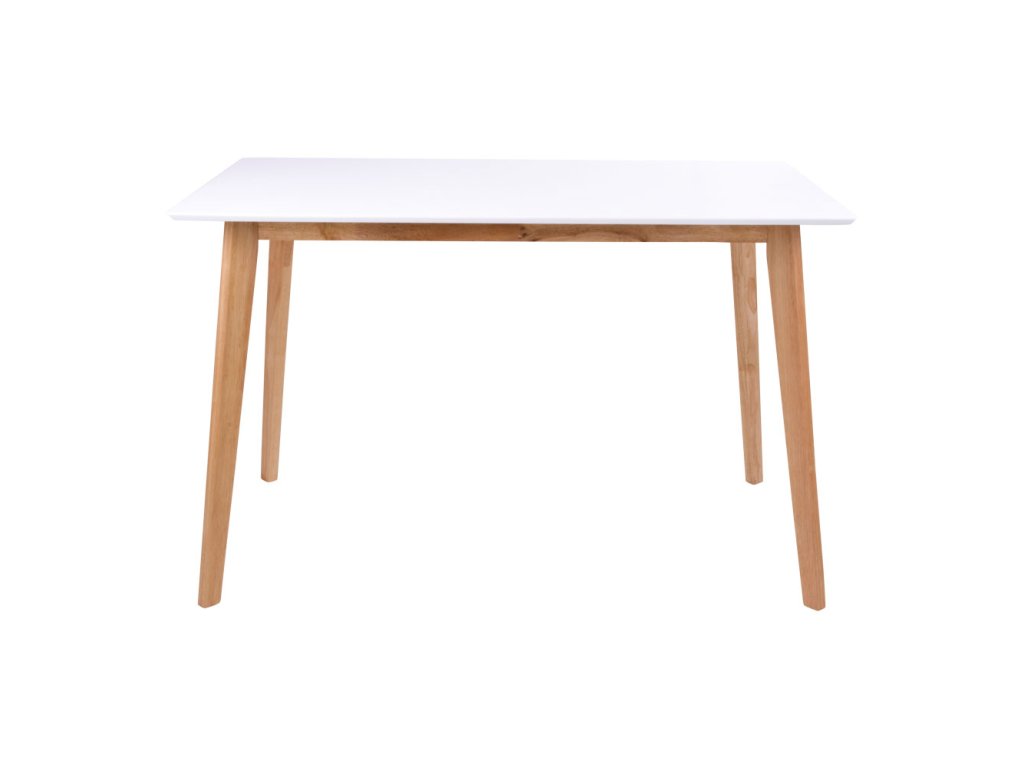 Vrchná doska z odolného MDF je pevná a ľahko sa udržiava, zatiaľ čo nohy z masívneho kaučukovníkového dreva poskytujú stabilitu a teplý prírodný akcent. Vďaka rozmerom 120 × 70 × 75 cm je ideálny pre menšie jedálne, kuchyne či byty.