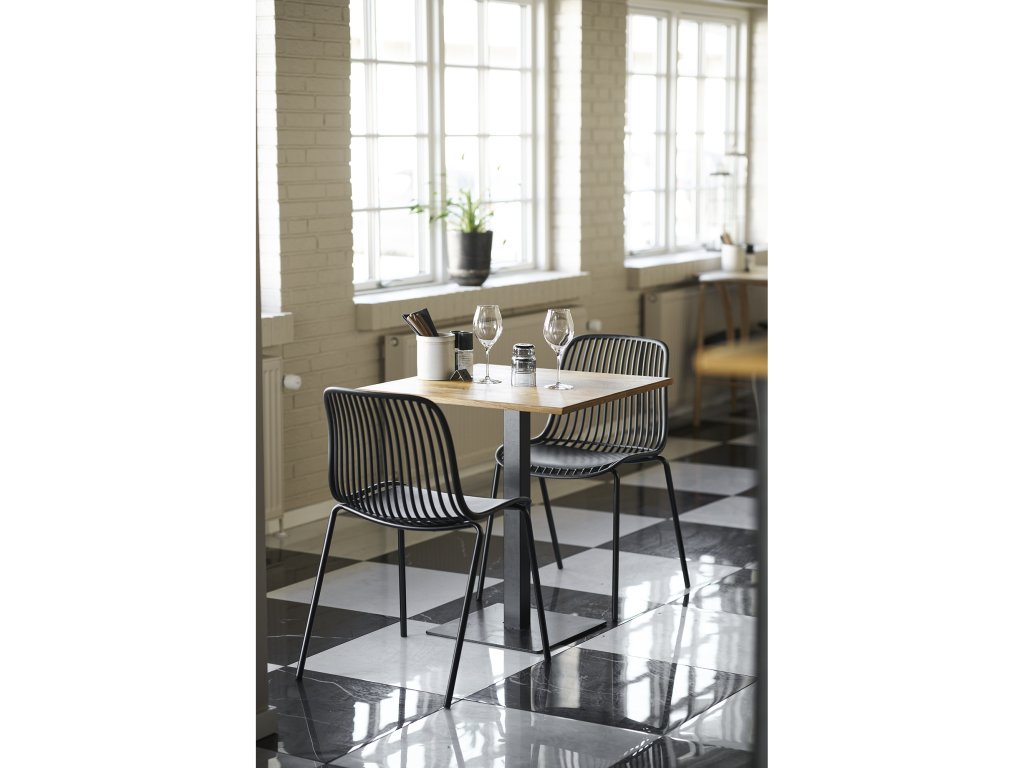 Fano kaviarenský stôl je štýlový a praktický stôl s melamínovou doskou a čiernym kovovým rámom, ideálny pre kaviarne, kuchyne alebo menšie jedálenské priestory. Vďaka kompaktným rozmerom 70×70×75 cm poskytuje pohodlné miesto na stolovanie alebo kávu, pričom nezaberá veľa miesta.