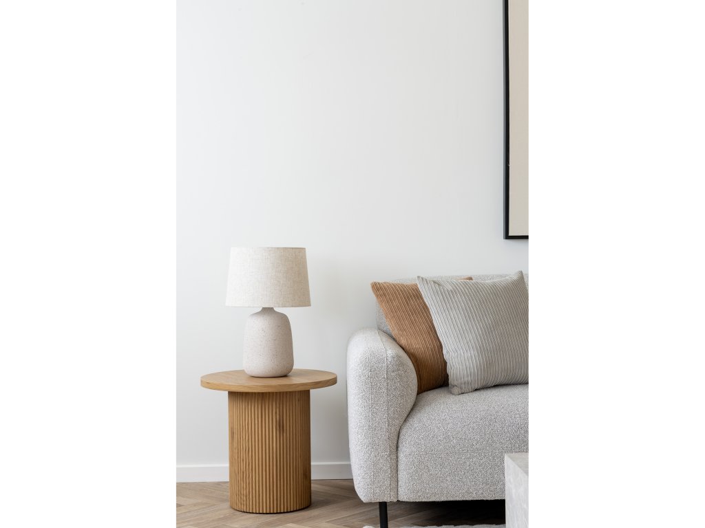 Vyrobená z kvalitného fiberclay (keramika s pieskovou štruktúrou), stolná lampa pôsobí ľahko a elegantne, pričom zachováva pevnosť a stabilitu. S kompaktnými rozmermi 30 × 30 × 46 cm a priemerom 30 cm sa perfektne hodí na nočný stolík, komodu alebo pracovný stôl, kde dodá priestoru príjemnú a teplú atmosféru.