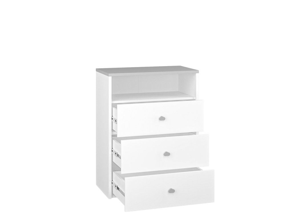 Komoda Leon je praktická a štýlová komoda do detskej izby, ktorá ponúka dostatok úložného priestoru na oblečenie, hračky aj ďalšie detské potreby. Kombinácia bielej a sivej farby pôsobí moderne, jemne a univerzálne, vďaka čomu sa hodí do izby pre chlapca aj dievča.