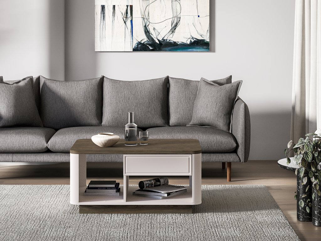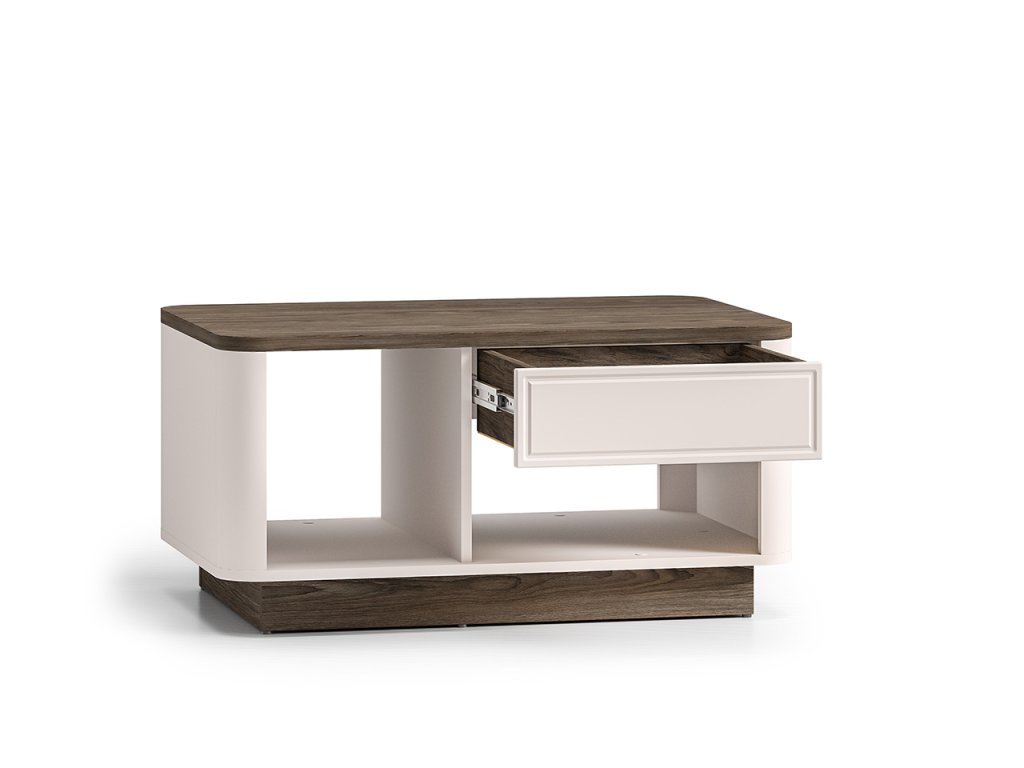 Stolík je doplnený praktickou zásuvkou, do ktorej môžete jednoducho uschovať ovládače alebo iné drobnosti, čím si udržíte poriadok v obývačke.