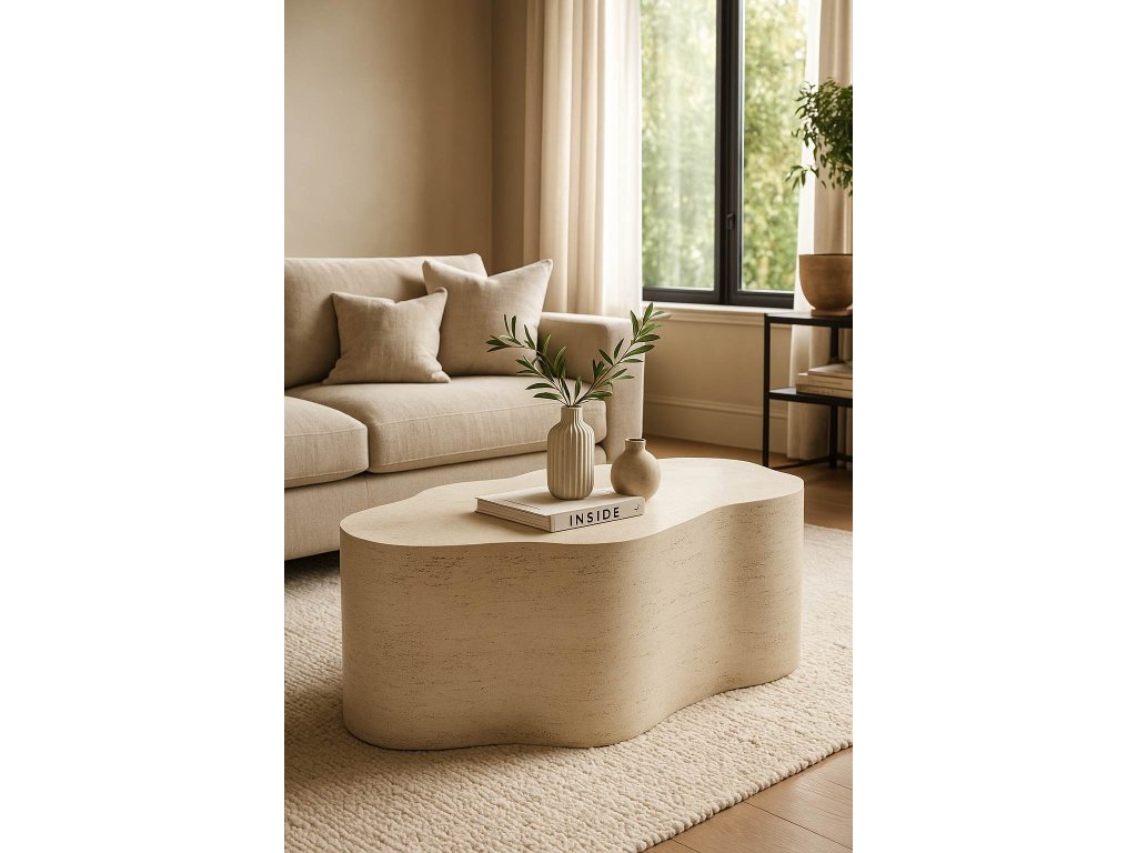 Stolík Cloud zaujme svojím organickým tvarom, ktorý pripomína jemne opracovaný kameň, a stáva sa tak skutočným dizajnovým solitérom v každej obývačke. Jeho krémová farba a plynulé línie prinášajú do priestoru sviežu a sofistikovanú eleganciu, ktorá harmonicky dopĺňa moderné, svetlé interiéry.