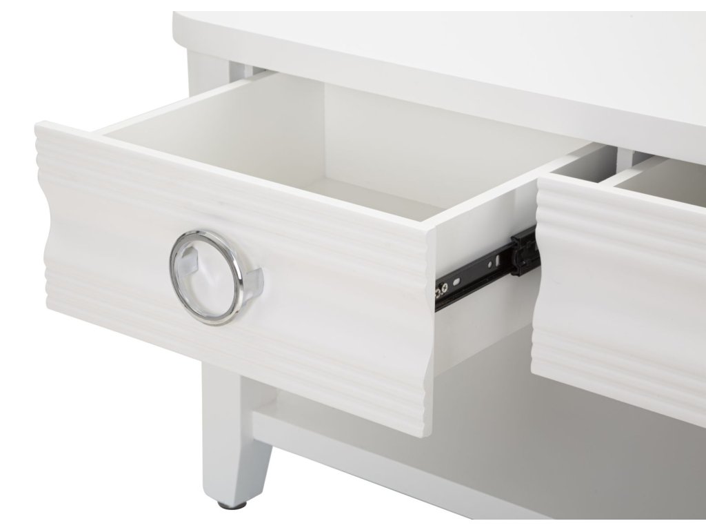 Stolík s povrchovou úpravou v elegantnej bielej farbe, ktorá je odolná voči poškriabaniu a ľahko sa čistí. Jeho minimalistický a moderný dizajn s čistými líniami a hladkým povrchom z neho robí ideálny doplnok do akéhokoľvek interiéru, či už v škandinávskom, modernom alebo industriálnom štýle.
