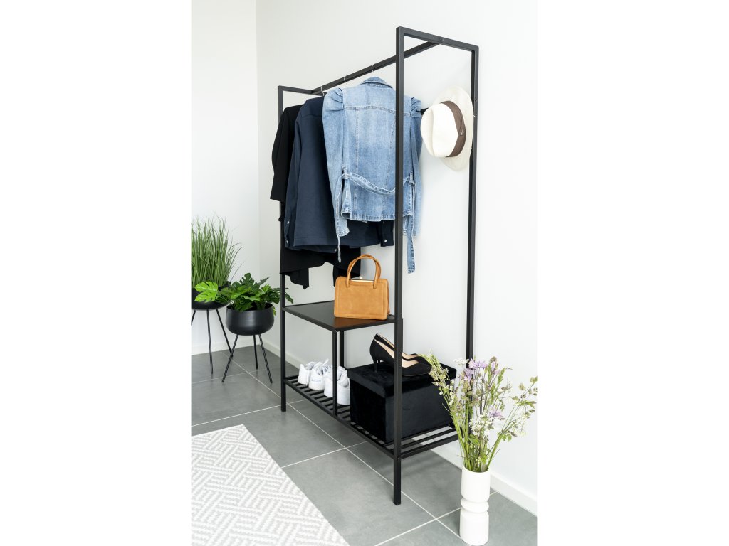 Vita je vyrobená z ocele a laminovanej drevotriesky s melamínovou fóliou, navyše ponúka stabilitu, odolnosť a dlhú životnosť. Jej celokovový rám v čiernej farbe dodáva skrini moderný industriálny charakter, zatiaľ čo tmavé plochy pôsobia elegantne a harmonicky v každom priestore – od spálne cez chodbu až po študentskú izbu.