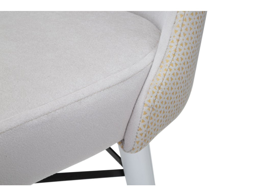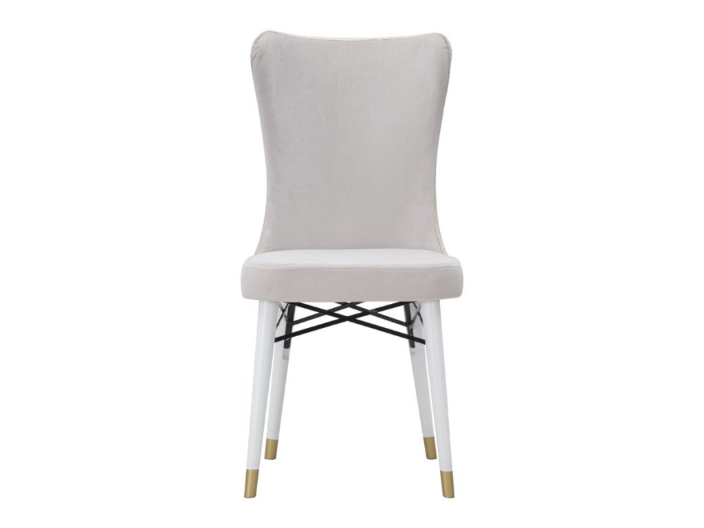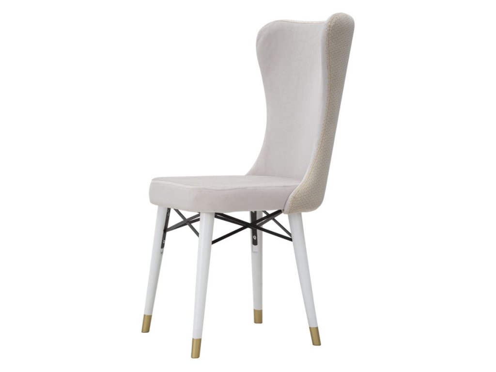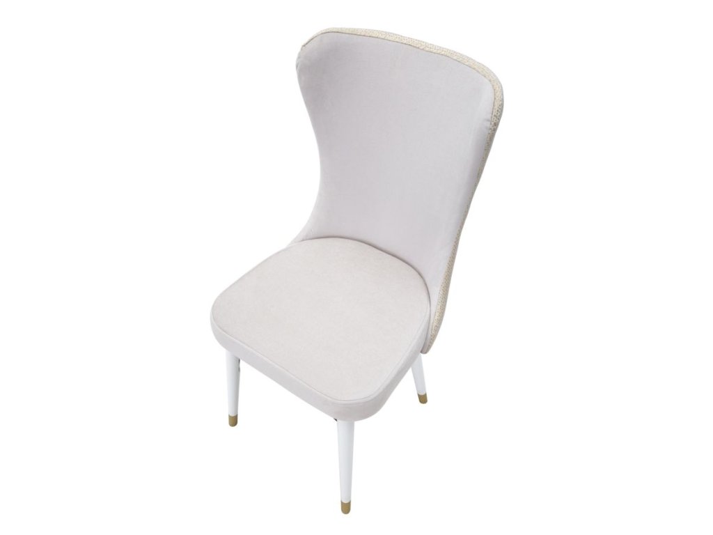 Set 2 ks kresiel Mimoza v rozmere 40 × 65 × 99 cm spája pohodlie s elegantným a nadčasovým dizajnom. Kreslá sú čalúnené luxusným zamatom v krémovej farbe a doplnené drevenými nohami s jemnými zlatými detailmi, ktoré im dodávajú sofistikovaný vzhľad. Sinuózny tvar operadla spolu s čistými a minimalistickými líniami robí z týchto kresiel štýlový doplnok vhodný do obývačky, jedálne, kancelárie alebo luxusných spoločenských priestorov.
