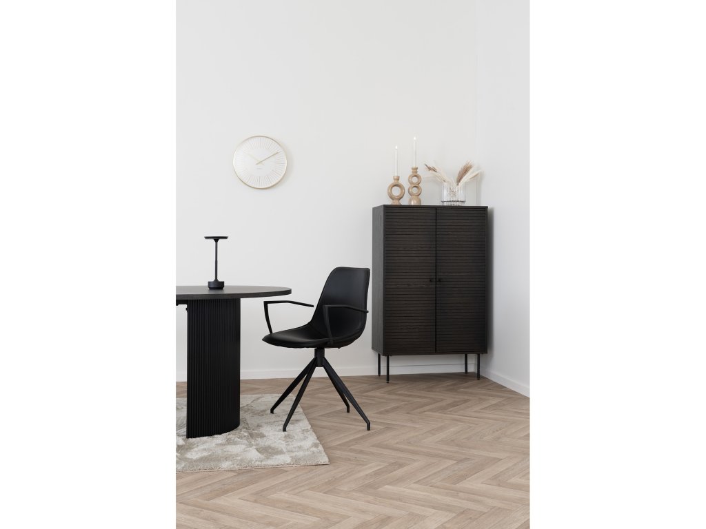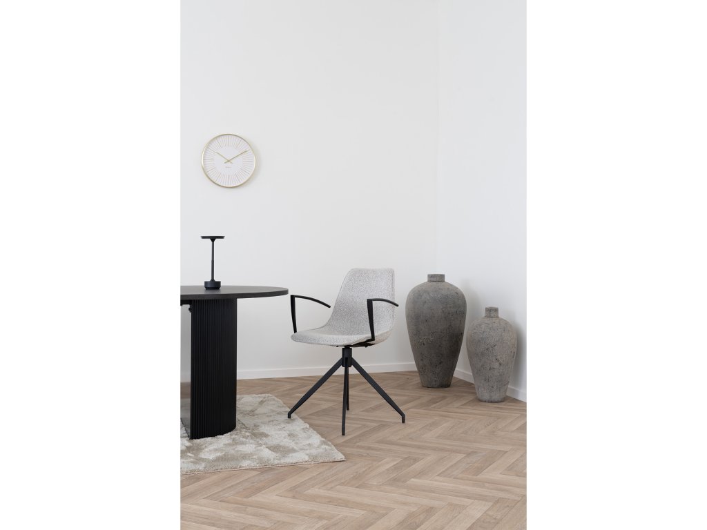 Elegantnú a modernú atmosféru podčiarkujú čierne kovové nohy, ktoré zaručujú stabilitu a bezpečnosť pri nosnosti až 110 kg. Vďaka hmotnosti len 8 kg je stolička zároveň ľahko manipulovateľná, ale pevná a odolná.