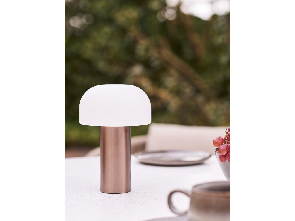 Táto dobíjateľná LED lampa je navrhnutá pre praktické aj estetické využitie – ideálna na nočný stolík, komodu, terasu či záhradné posedenie. Vďaka certifikácii IP44 je vhodná aj na vonkajšie použitie, kde vytvára príjemnú a útulnú atmosféru.