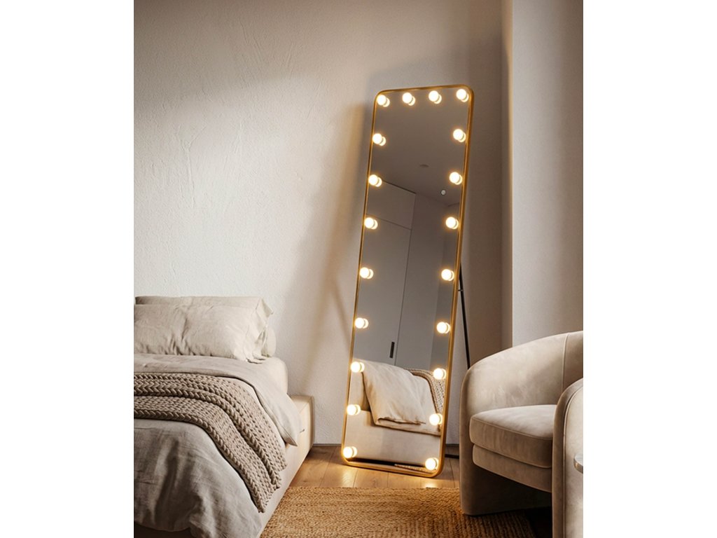 Zrkadlo Hollywood Rectangular je ideálne pre moderné, contemporary, art deco alebo glam interiéry. Skvelo ladí s neutrálnymi tónmi, tmavým drevom a zlatými doplnkami, pričom sa stáva výrazným a profesionálnym dizajnovým prvkom každej miestnosti.