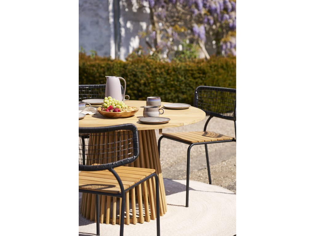 Kompaktný, odolný a elegantný, ideálny pre každodenné rodinné stolovanie alebo menšie stretnutia s hosťami. Prírodný teak a nadčasový okrúhly dizajn zaručujú, že stôl bude praktickým a štýlovým doplnkom každej jedálne.
