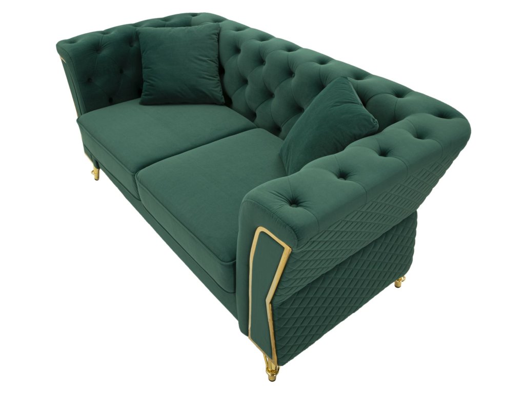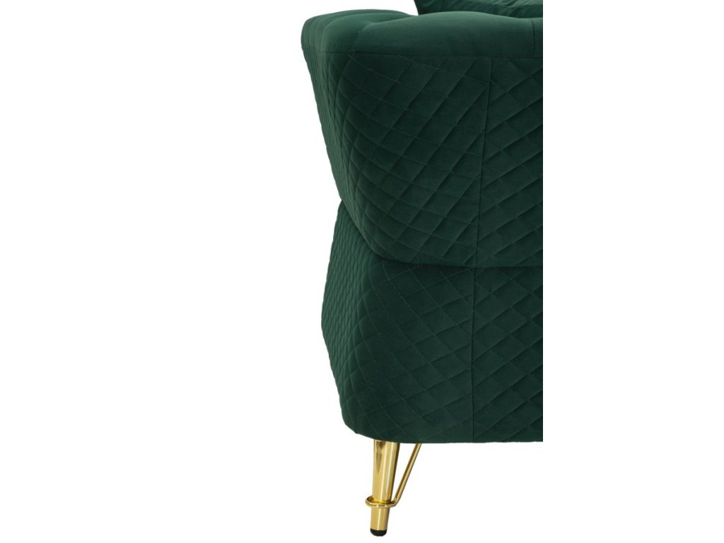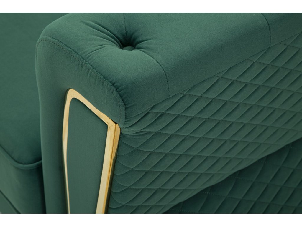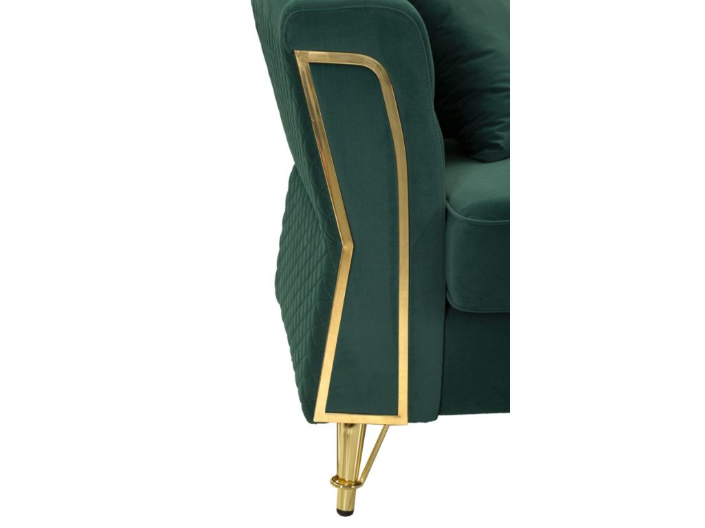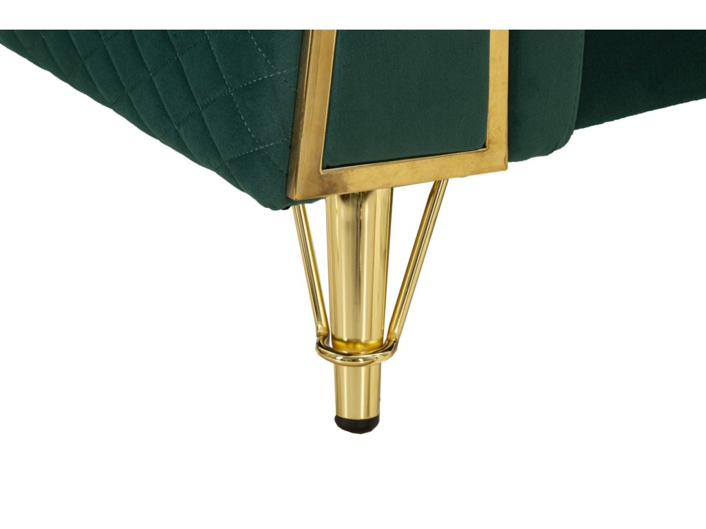 Vďaka svojmu štýlovému farebnému prevedeniu sa stane dominantným prvkom obývacej izby, pričom zelený odtieň vnesie do priestoru sviežosť a energiu. Dizajn dotvárajú elegantné zlaté nožičky, ktoré pôsobia luxusne a zároveň zabezpečujú stabilitu pohovky.
