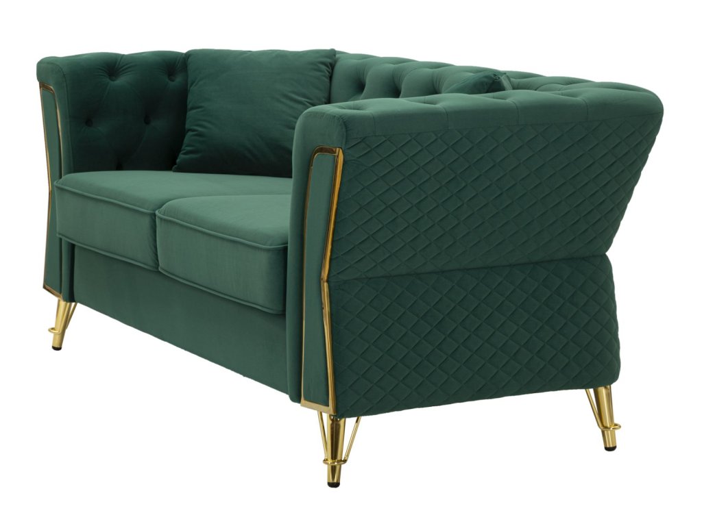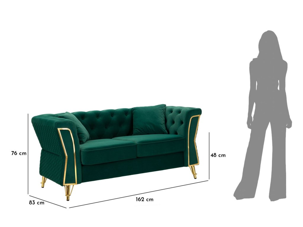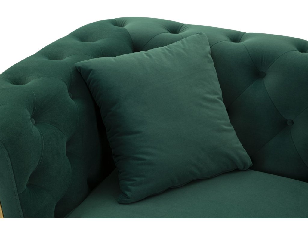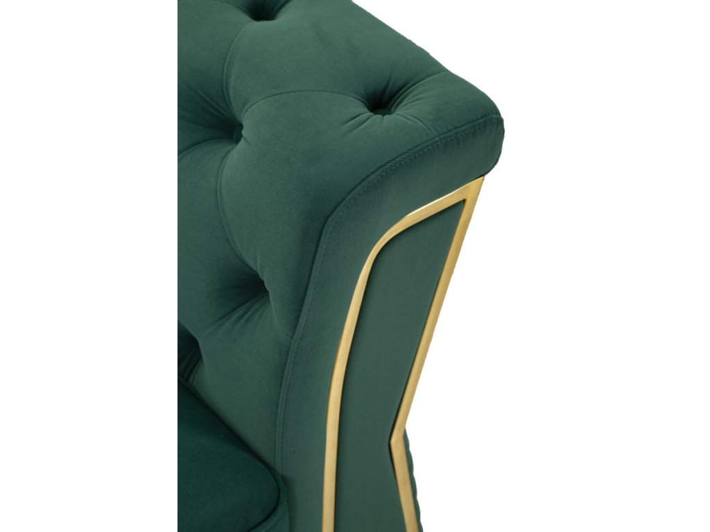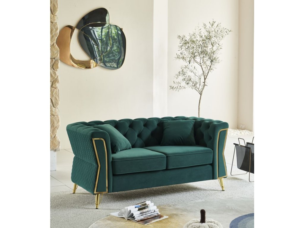 Vďaka svojmu štýlovému farebnému prevedeniu sa stane dominantným prvkom obývacej izby, pričom zelený odtieň vnesie do priestoru sviežosť a energiu. Dizajn dotvárajú elegantné zlaté nožičky, ktoré pôsobia luxusne a zároveň zabezpečujú stabilitu pohovky.