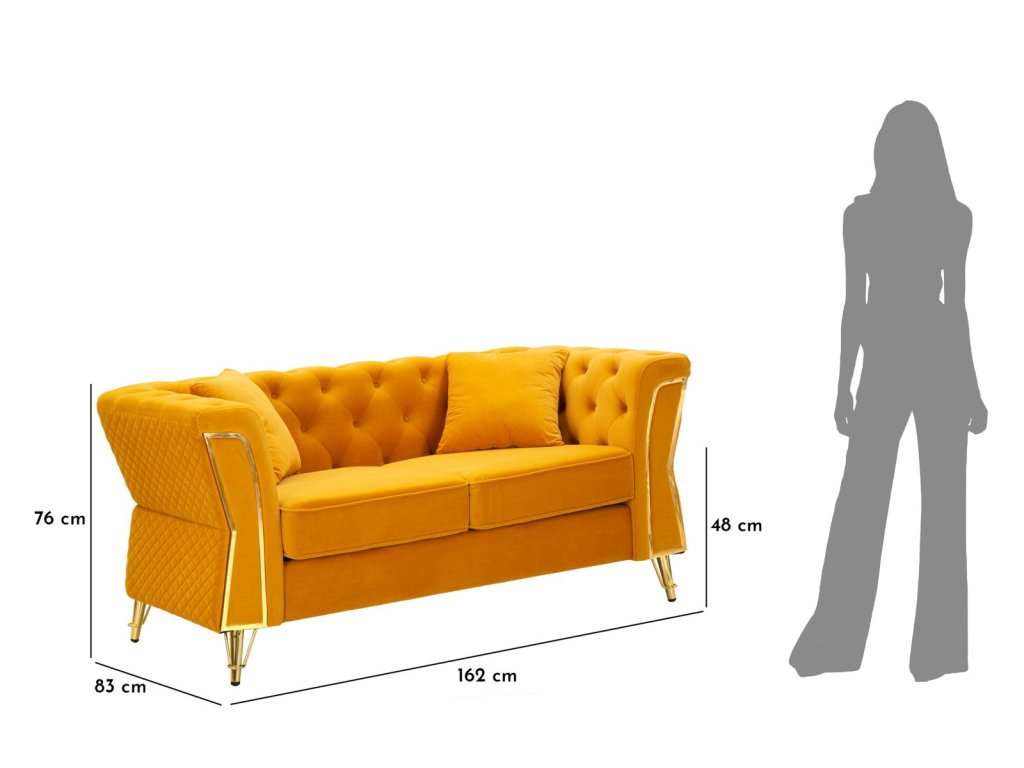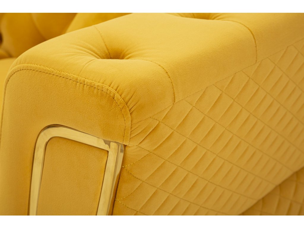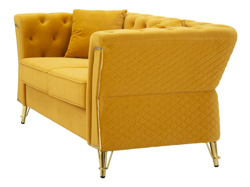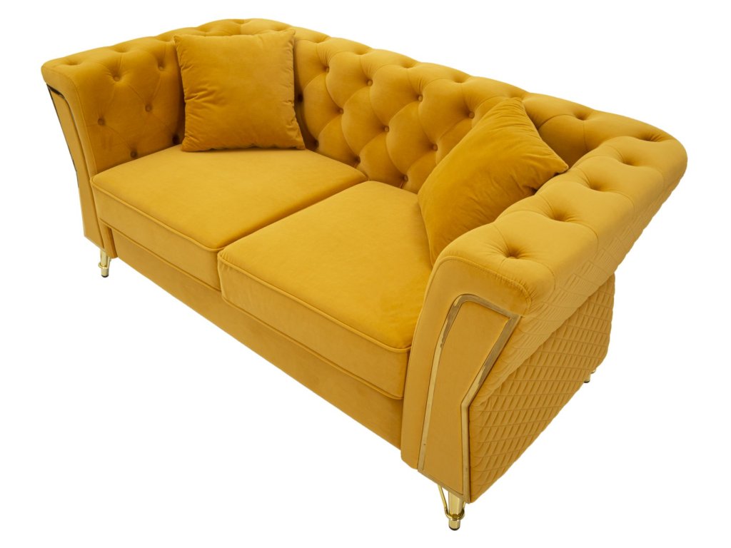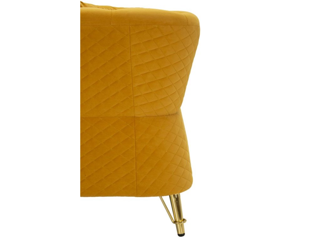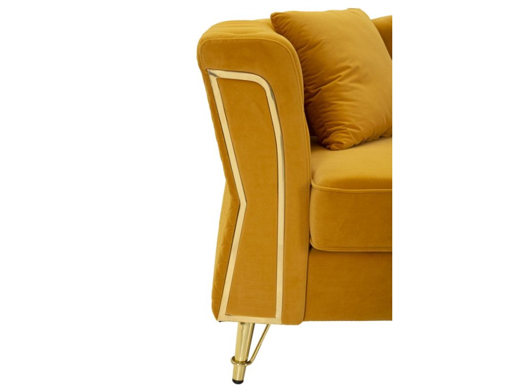 Vďaka svojmu štýlovému farebnému prevedeniu sa stane dominantným prvkom obývacej izby, pričom žltý odtieň vnesie do priestoru sviežosť a energiu. Dizajn dotvárajú elegantné zlaté nožičky, ktoré pôsobia luxusne a zároveň zabezpečujú stabilitu pohovky.