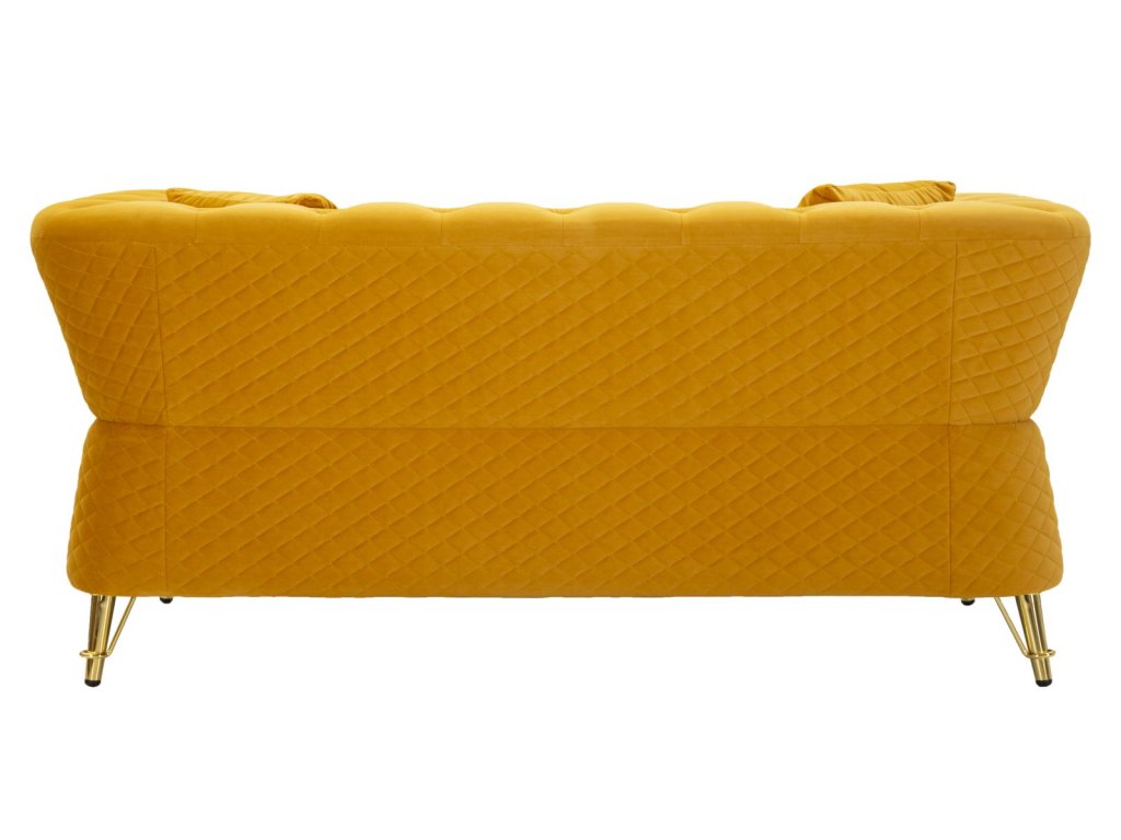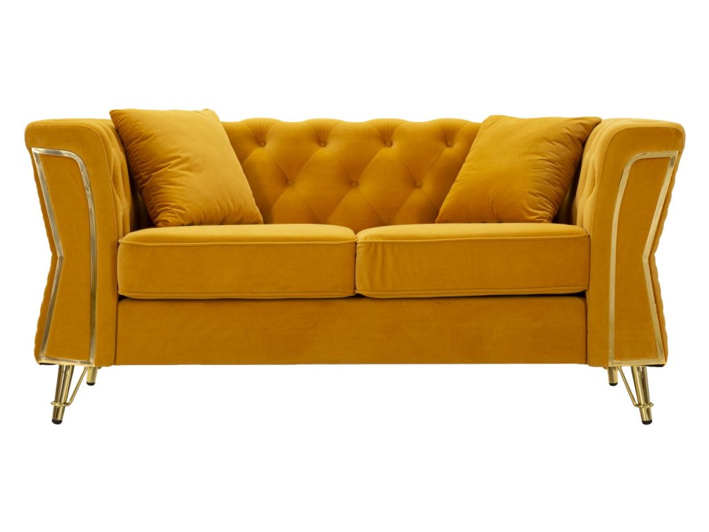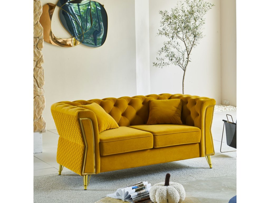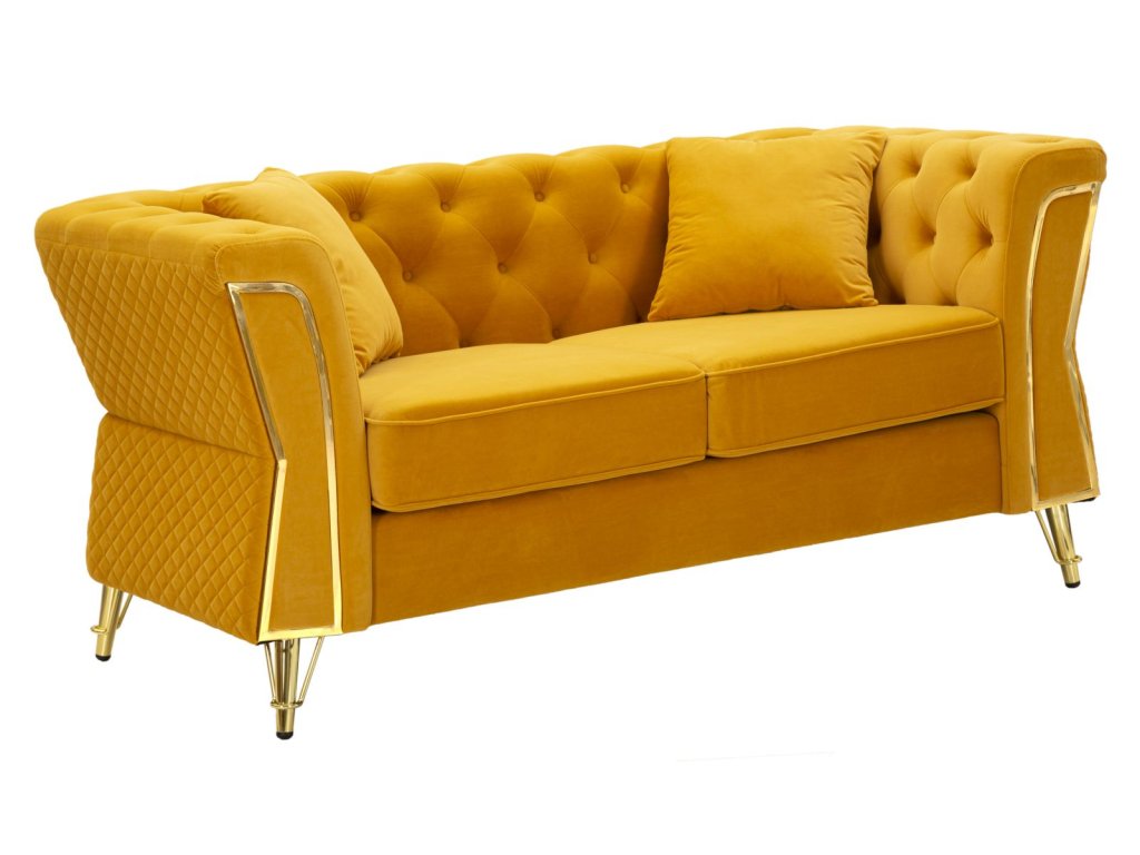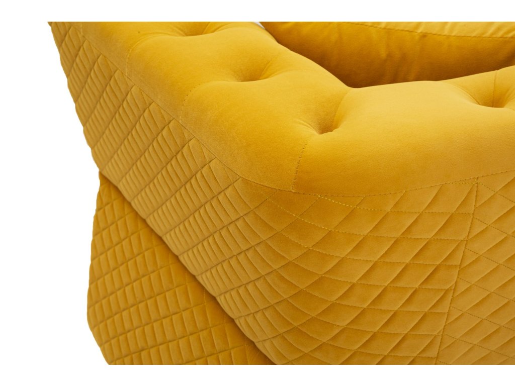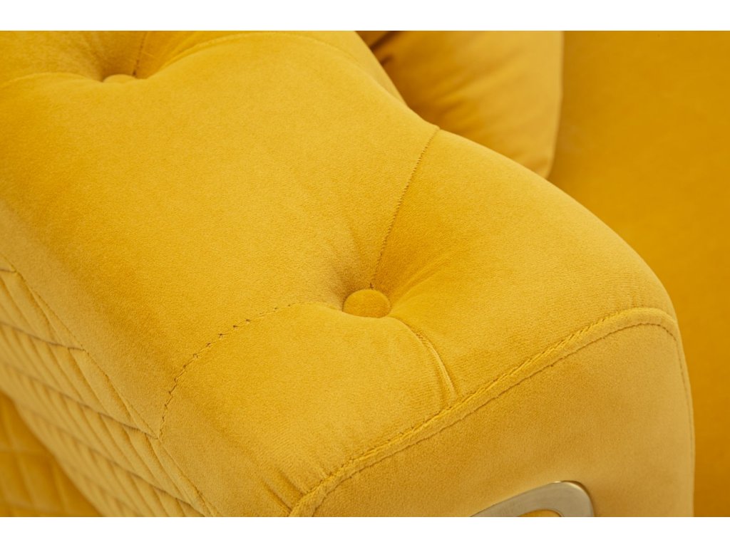 Vďaka svojmu štýlovému farebnému prevedeniu sa stane dominantným prvkom obývacej izby, pričom žltý odtieň vnesie do priestoru sviežosť a energiu. Dizajn dotvárajú elegantné zlaté nožičky, ktoré pôsobia luxusne a zároveň zabezpečujú stabilitu pohovky.