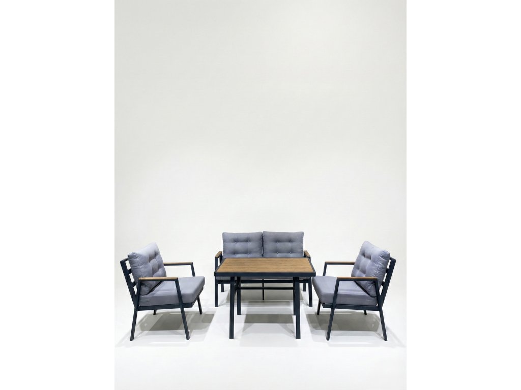 Záhradný set Athens pozostáva z dvojmiestnej pohovky, dvoch kresiel a kávového stolíka. Táto kombinácia ponúka dostatok miesta pre pokojný relax, letné posedenia alebo príjemné popoludňajšie chvíle pri káve. Minimalistický a moderný dizajn umožňuje jednoduché kombinovanie s ďalším exteriérovým nábytkom a doplnkami, čím vytvára harmonický a štýlový priestor.