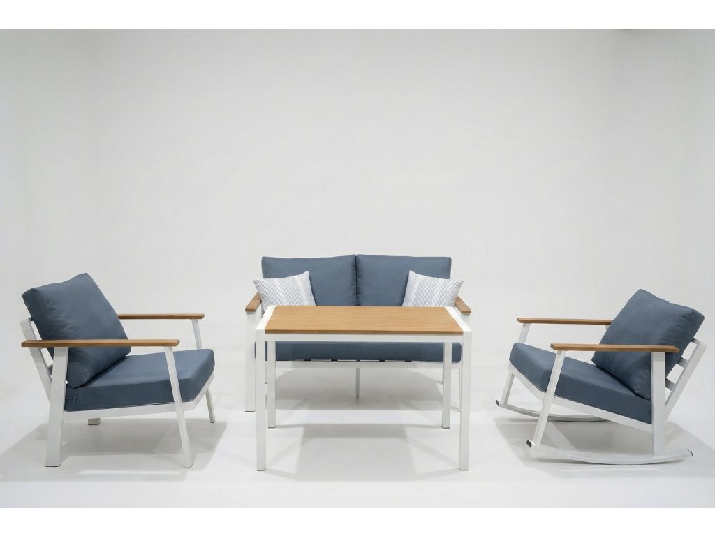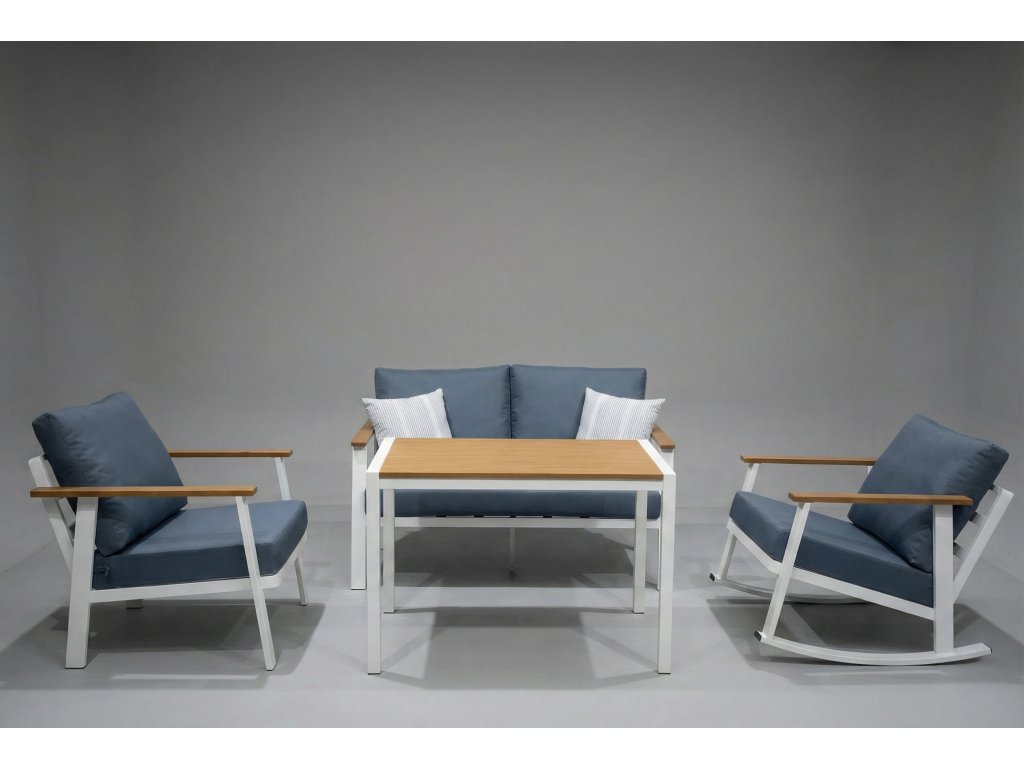 Záhradný set Luna pozostáva z dvojmiestnej pohovky, dvoch kresiel – z toho jedno v hojdacom prevedení – a praktického jedálenského stola. Táto kombinácia je ideálna pre rodinné posedenia, letné večery s priateľmi alebo pokojné chvíle pri káve. Vďaka svojmu univerzálnemu dizajnu sa set jednoducho kombinuje s exteriérovými doplnkami, vankúšmi či slnečníkmi.