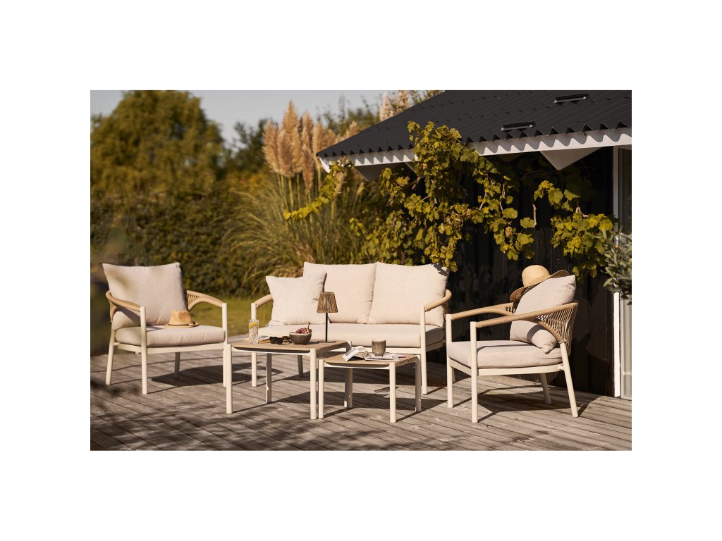 Záhradná súprava Abela sa výborne kombinuje s rôznymi exteriérovými doplnkami:
