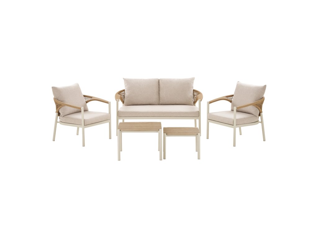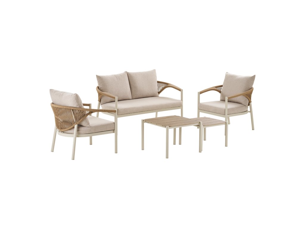 Predstavujeme vám záhradnú lounge súpravu Abela, ktorá premení vašu terasu alebo záhradu na štýlové a pohodlné miesto oddychu. Tento moderný záhradný nábytok spája elegantný dizajn, odolné materiály a maximálny komfort, vďaka čomu sa stane srdcom vášho exteriéru. Vyrobená z kvalitného hliníkového rámu, odolného PE ratanového materiálu a príjemného polyesterového poťahu, súprava Abela je ideálna na každodenné používanie vonku. Jej svetlé, prirodzené farebné prevedenie sand/natural dodáva terase či záhrade jemný, sofistikovaný vzhľad.
