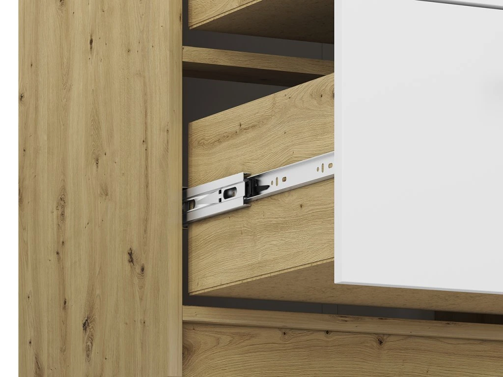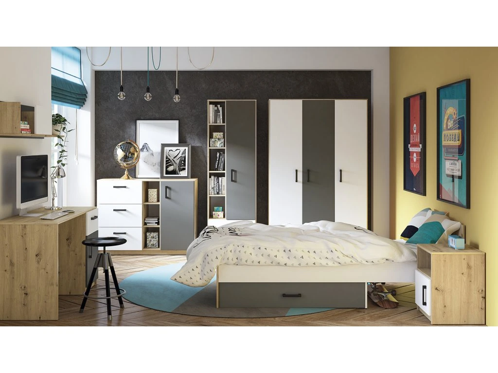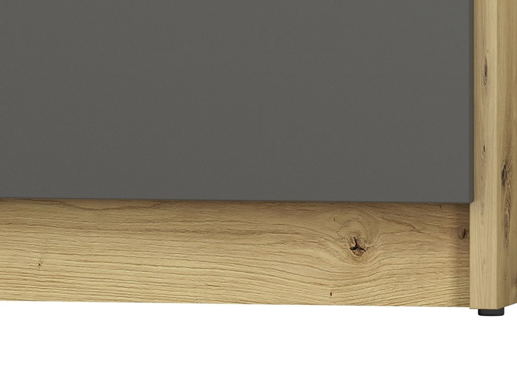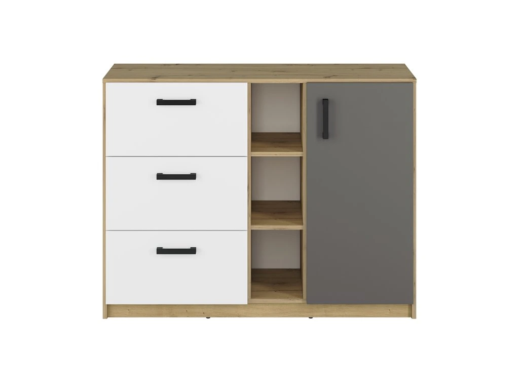 Komoda Fini je praktická a moderná komoda, ktorá ponúka ideálne riešenie pre uloženie vecí v detskej alebo študentskej izbe. Kombinácia bielej, antracitovej a dekoru dub artisan vytvára štýlový kontrast, ktorý pôsobí moderne a nadčasovo.