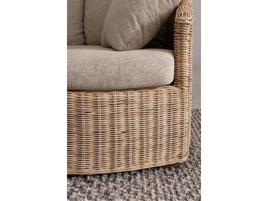 Daybed Cadice je vyrobený z prírodného ratanu, jemne tkaného do elegantného prepletania, ktoré dodáva nábytku ľahkosť a sofistikovaný vzhľad. Povrch je upravený nitrocelulózovým lakom, ktorý zachováva teplé tóny a štruktúru ratanu. Stabilitu a pevnosť dodávajú nohy z mangového dreva, ktoré zároveň dodávajú prírodný a estetický akcent.